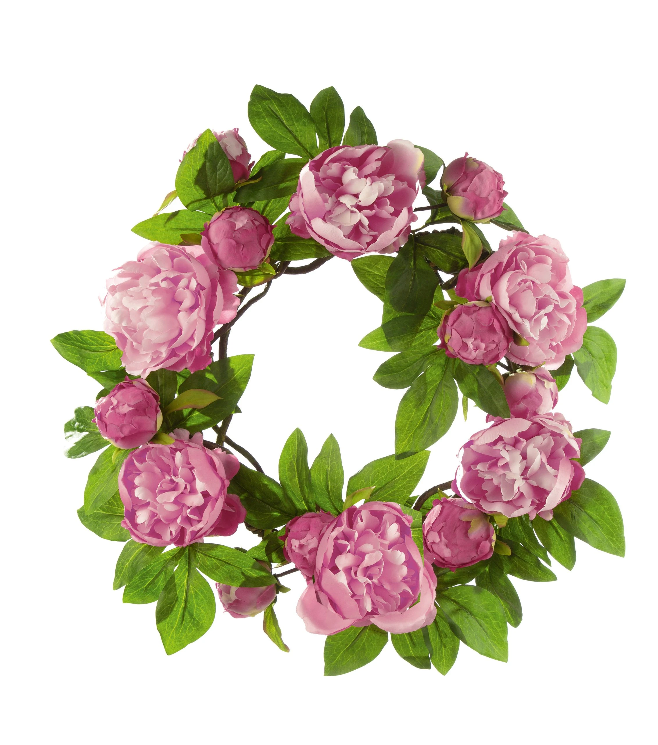 Was für eine herrliche und üppige Blütenpracht! Dieser Anblick ist doch einfach nur wunderschön und darum empfehlen wir Ihnen, genießen Sie ihn ab jetzt jeden Tag! Sichern Sie sich den mit viel Liebe handgefertigten Pfingstrosenkranz von GILDE der mit dem Durchmesser von 46 cm für einen echten Blickfang in Ihrem Zuhause sorgen wird. Die farbenfrohen Pfingstrosen sehen täuschend echt aus, auch aus der Nähe betrachtet. Sie können diesen Hingucker sowohl hängend, als auch liegend in Ihrem Zuhause präsentieren. Vielleicht ziert er ja demnächst ihre Haustür oder stellt sich im Fenster den vorbeigehenden Passanten zur Schau?