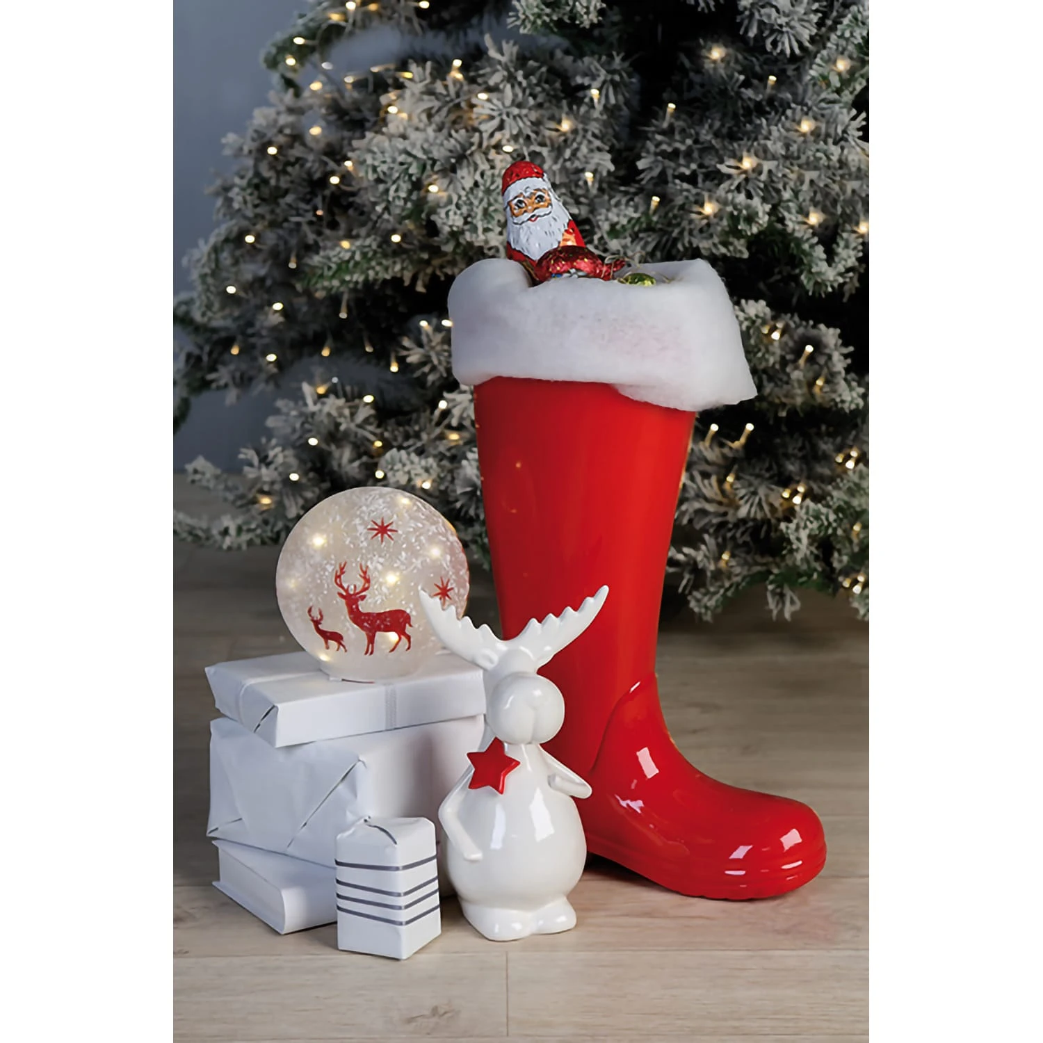 Der Regenschirmständer Stiefel aus Keramik ist 45 cm hoch, hat eine Breite von 26 cm und Tiefe von 11 cm. Er hilft Ihnen Ordnung zu halten und ist zudem auch noch ein toller Stiefel zu Weihnachten. Der rote Schirmständer aus europäischer Herstellung ist außen glänzend und hat innen einen Kunststoff- Topf. Holen Sie sich diese originelle Form eines Gummistiefels als Blickfang in Ihr zu Hause. Die praktischen Wohnaccessoires sind der ideale Auffangbehälter für nasse Schirme und verhindern dadurch das der Wohneingang verschmutzt oder in Mitleidenschaft gerät. Damit Sie auch bei regnerischen Tagen immer gut vorbereitet sind, haben Sie mit dem Regenschirmständer für den Flur und die Diele Ihre Regenschirme sortiert und griffbereit zum Mitnehmen parat. Ob in einem Wohnstil des Industrial-Chick oder in einem modernen Landhaus: dieser Schirmständer passt in viele unterschiedlichen Einrichtungsstile und lässt an einem Regentag die Sonne rein.