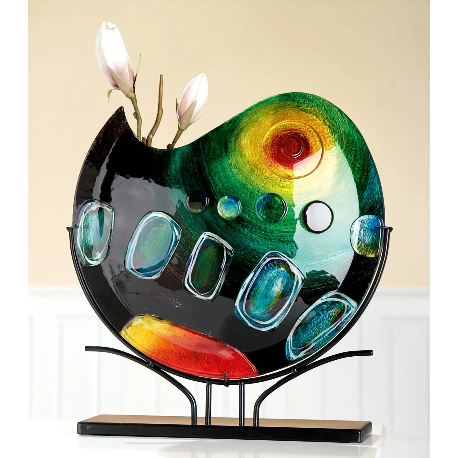 GILDE Glas Art Vase SUNRISEFusing: Perfekt für alle, bei denen Vasen viel mehr als nur schlichte Gebrauchsgegenstände sein dürfen: Die Glas Art Vase SUNRISE bietet eine gelungene Fusion aus Kunstobjekt und Funktionalität. Ob als lächelnde Begrüßung im Eingangsbereich oder als freundliche Dekoration auf Tisch und Tafel. Diese Vase macht selbst ohne Blumen eine gute Figur und ist schnell als außergewöhnlicher Dekoakzent platziert. Mit ihrem verspielten Design bildet sie besonders in minimalistischen und gradlinigen Interieurs einen freundlichen und geschmackvollen Kontrast. Mit viel handwerklichem Geschick wird jede einzelne Vase in Handarbeit hergestellt. So entsteht ein Unikat mit charakteristischen Details und unverwechselbarem Charme. Die strahlenden Farben sorgen besonders bei einfallendem Sonnenlicht für ein faszinierendes Spiel und harmonieren mit den Blütenfarben von so manchem buntem Blumenstrauß.