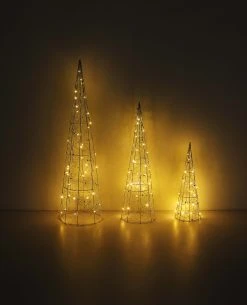 Dekorartikel Metall silber, Kunststoff klar, Kabel PVC transparent, Schiebeschalter, Timer, weitere Funktionen: 6 Stunden ON / 18 Stunden OFF, ø: 210mm, H: 800mm, Distanz zwischen LEDs 100mm, Länge Zuleitungskabel 300mm, 3-er Set: 1 x DM: 13 cm H: 40 cm, 1 x DM: 17 cm H: 60 cm, 1 x DM: 21 cm H: 80 cm, inkl. LED 0.06W 3V, 2800K, inkl. 30x LED 0.06W 3V, 2800K, inkl. 40x LED 0.06W 3V, 2800K