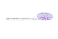 LED-Band Kunststoff, dimmbar, RGB Farbwechsler, RGB Farben fixierbar, Verbinder inkl., Fernbedienung, Kürzbar, Batterie inkludiert 1x CR2025, 30 LED/Meter, LED weiß: 353lm, 199 Stufen, LxBxH: 5000x10x3mm, Länge Zuleitungskabel 1500mm, inkl. 150x RGBW LED 0.24W 230V, 353lm Source, 353lm Output, bunt