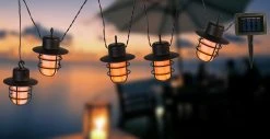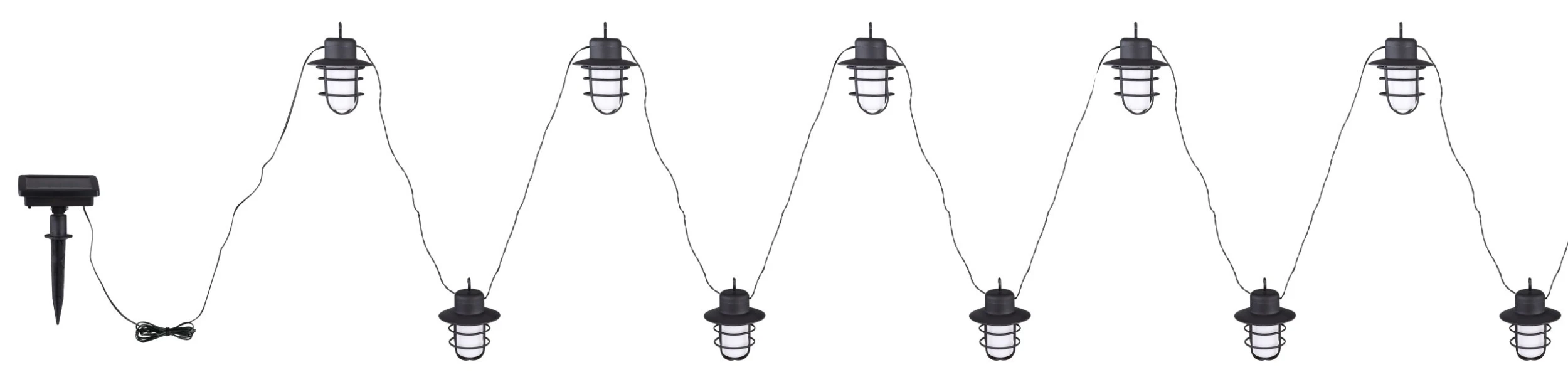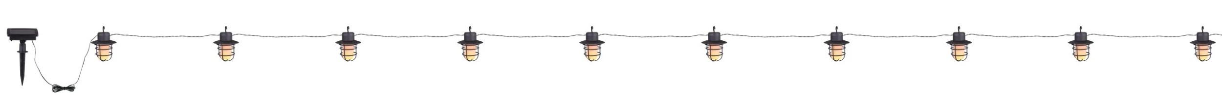 Solar-Lichterkette Kunststoff schwarz, Kunststoff weiß, Schiebeschalter, Feuereffekt, Akku inkludiert AA 600mAh 1.2V, IP44, 10 Laternen, LxBxH: 4800x82x112mm, Länge Zuleitungskabel 2000mm, inkl. 100x LED 0.1W 3V