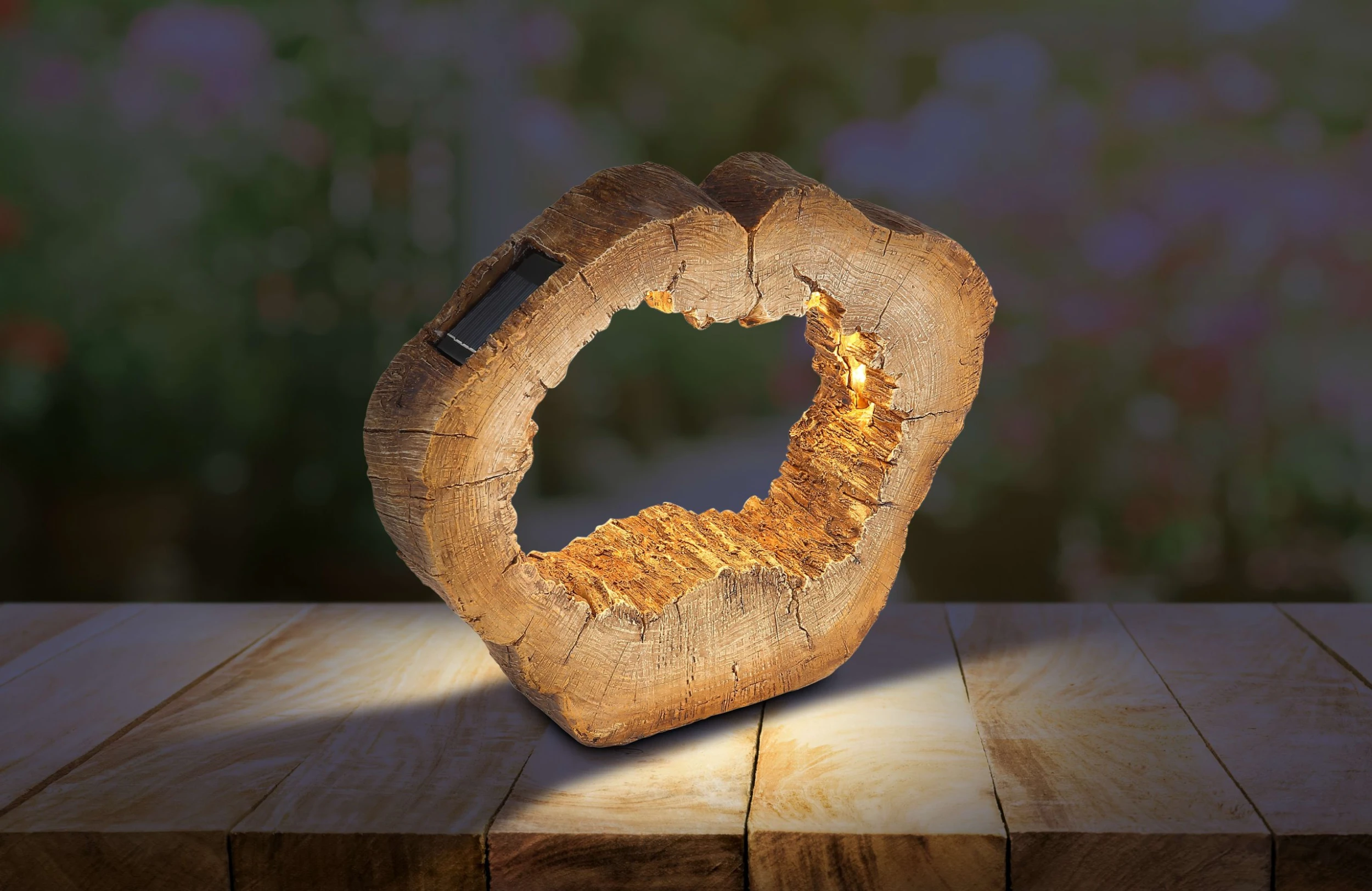 Solarleuchte Kunststoff braun, IP44, Baumstamm mit Loch, LxBxH: 305x85x255mm, inkl. 20x LED 0.06W 3V, 3000K