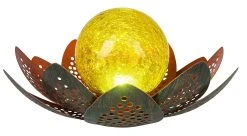 Solarleuchte Metall grün, goldfarben, Glas crackle, amber, Schiebeschalter, Akku inkludiert AAA 300mAh 1.2V, IP44, Blume mit Glaskugel, ø: 220mm, H: 135mm, inkl. LED 0.06W 3.2V, 6500K