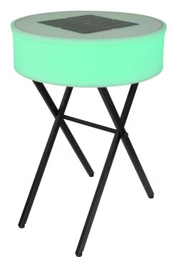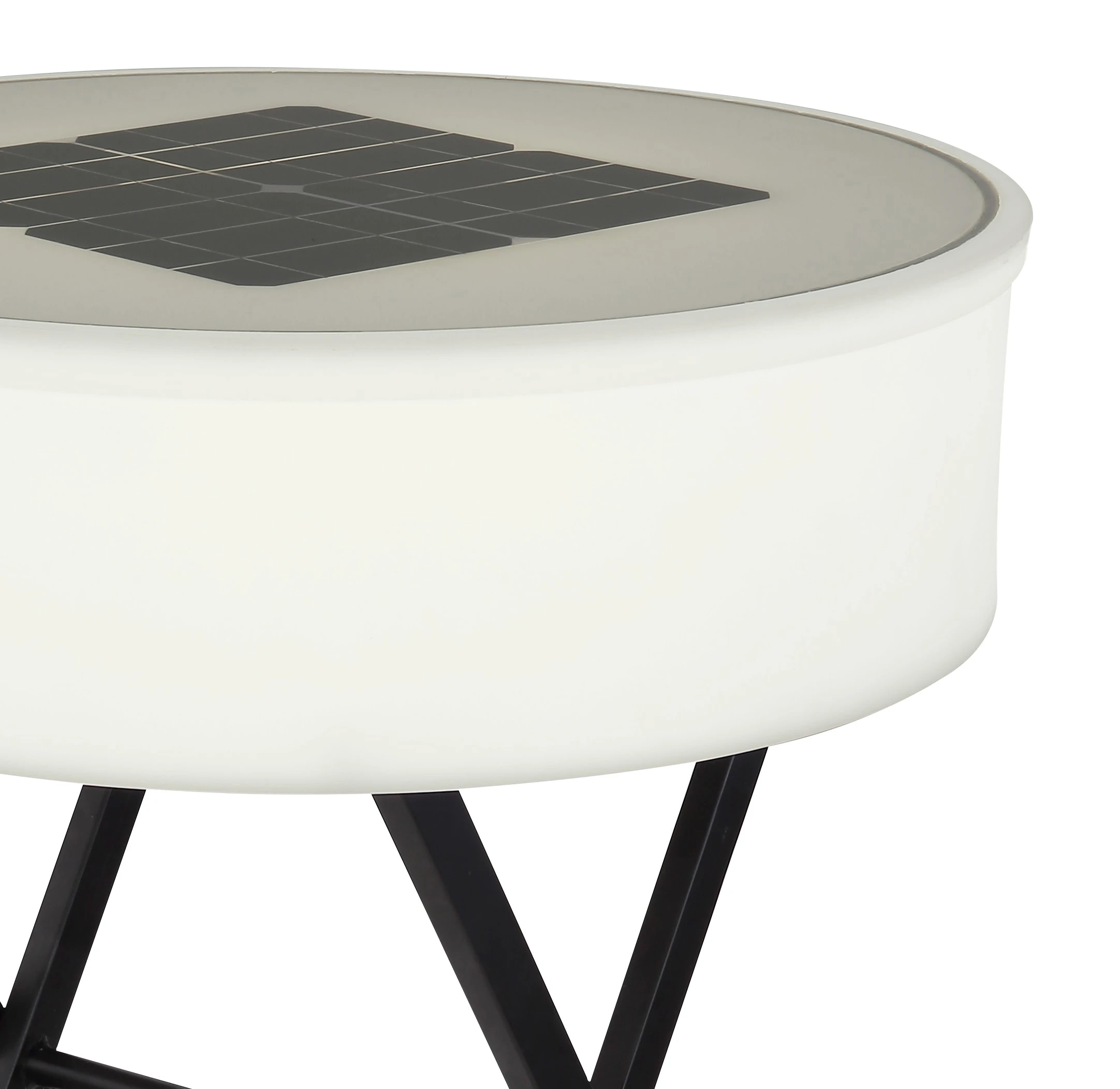 Solarleuchte Metall schwarz matt, Kunststoff opal, weiß, Druckschalter, Farbwechsler, Farben fixierbar, Bluetooth, Fernbedienung, Lautsprecher 8W, Akku inkludiert CR18650 7500mAh 3.7V, Batterie inkludiert 1x CR2032, IP44, runder Tisch, USB, ø: 530mm, H: 750mm, inkl. 10x LED 0.06W 3V, inkl. 10x RGB LED 0.06W 3V