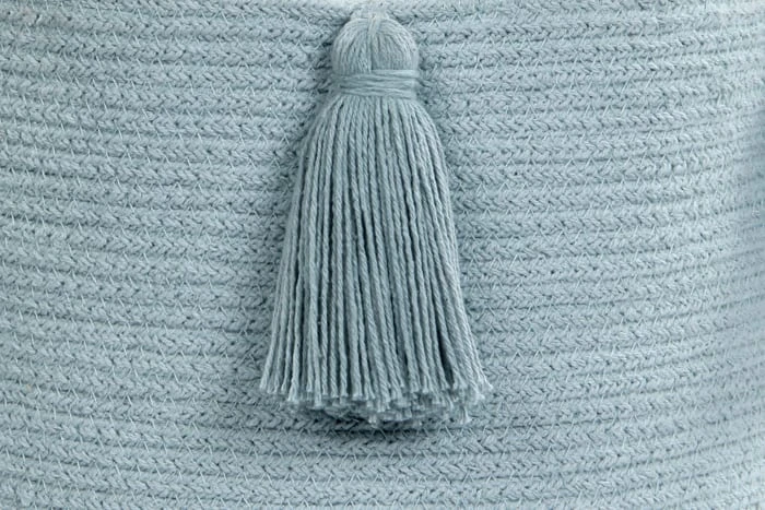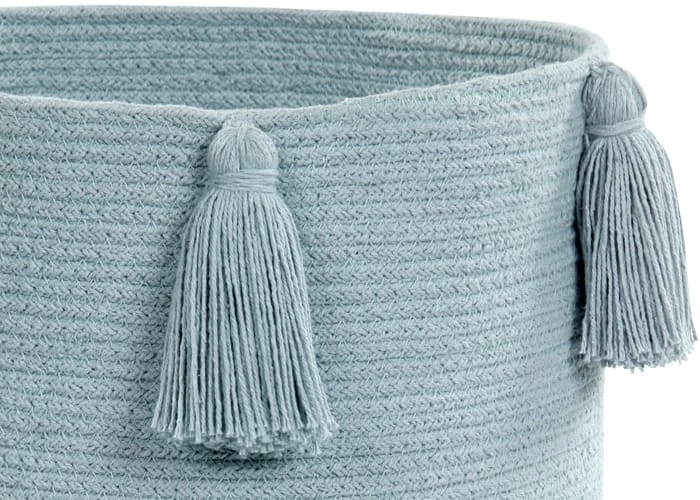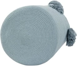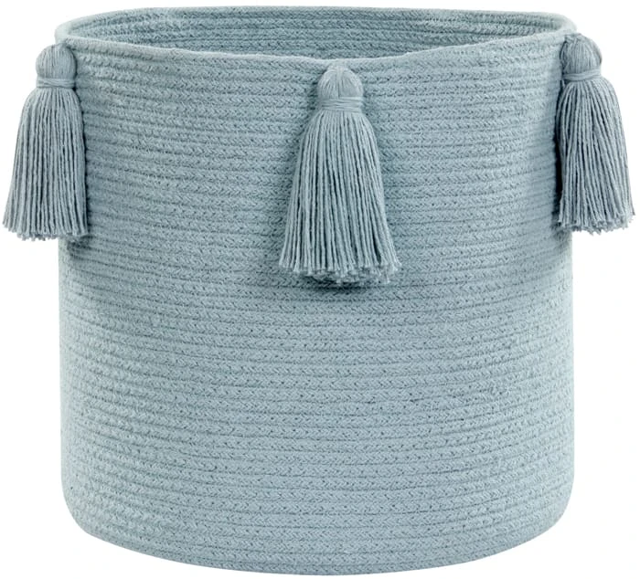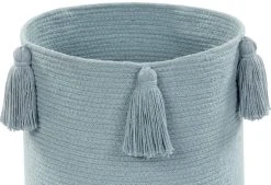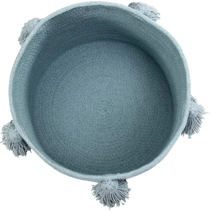 Pompon-Korb in Pastellblau, perfekte Ergänzung zur Beleuchtung und Dekoration des Kinderzimmers. Ideal zum Sammeln von Spielzeug nach langen Spielabendungen
