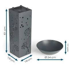 – Maße (L x B x H): Säule: ca. 19 x 19 x 61 cm. Pflanzschale: ca. Ø 34 cm, 11 cm Höhe