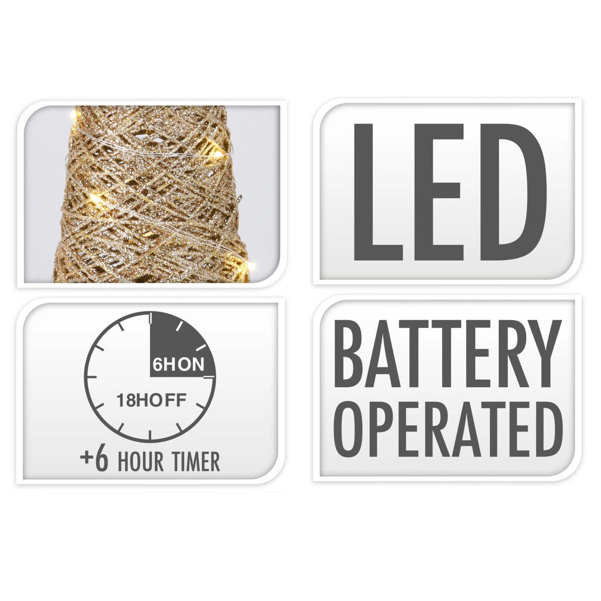 LED-Hintergrundbeleuchtung: Die Dekoration hat 40 LEDs, die eine warme, weiße Farbe haben. Sie wurden gleichmäßig verteilt, so dass der Weihnachtsbaum bei Einbruch der Dunkelheit wunderschön aussieht. Die Beleuchtung in Kombination mit der braunen Farbe des Weihnachtsbaums, ergänzt durch schimmernden Glitzer, ergibt einen wunderbaren visuellen Effekt.
