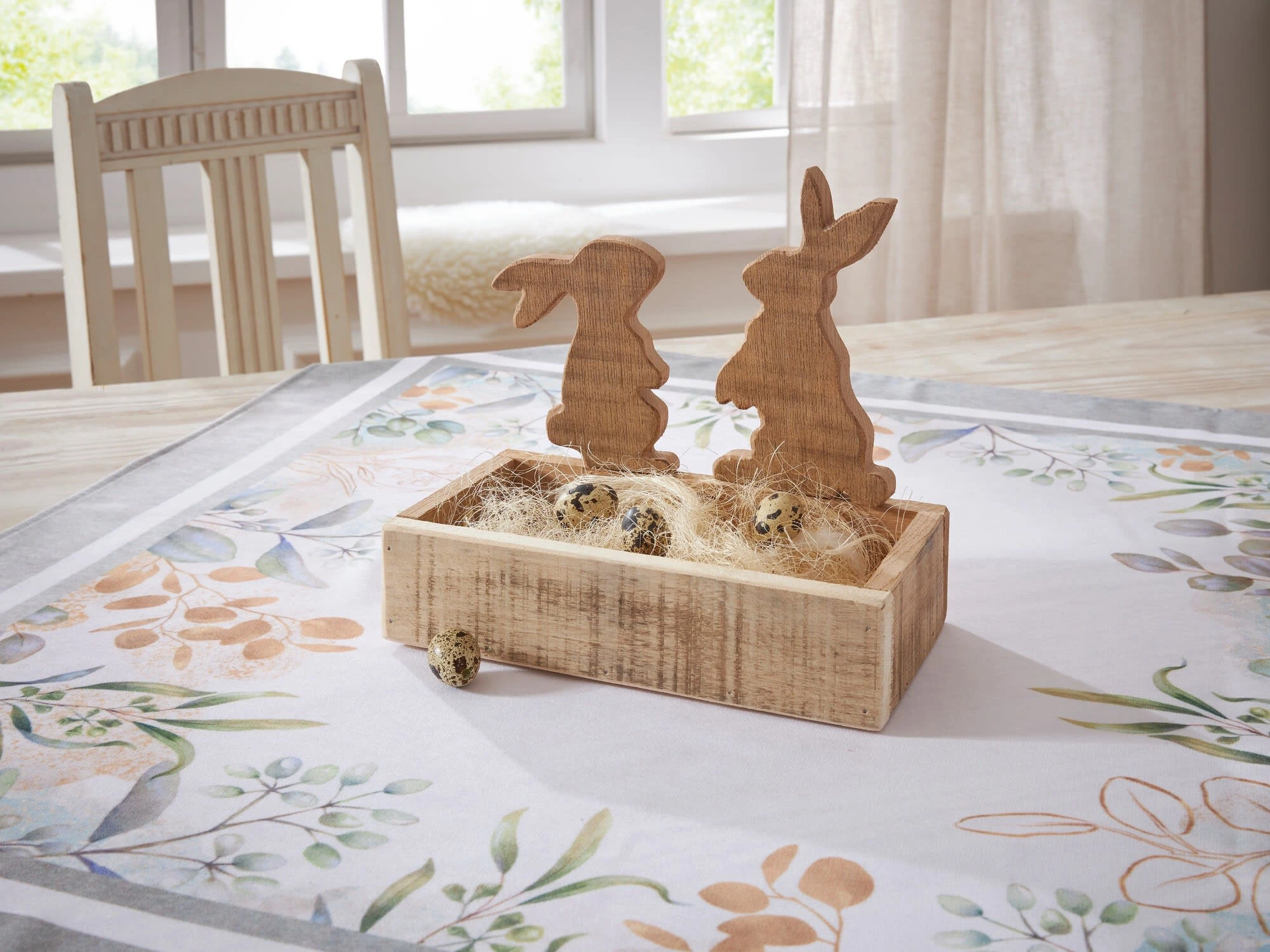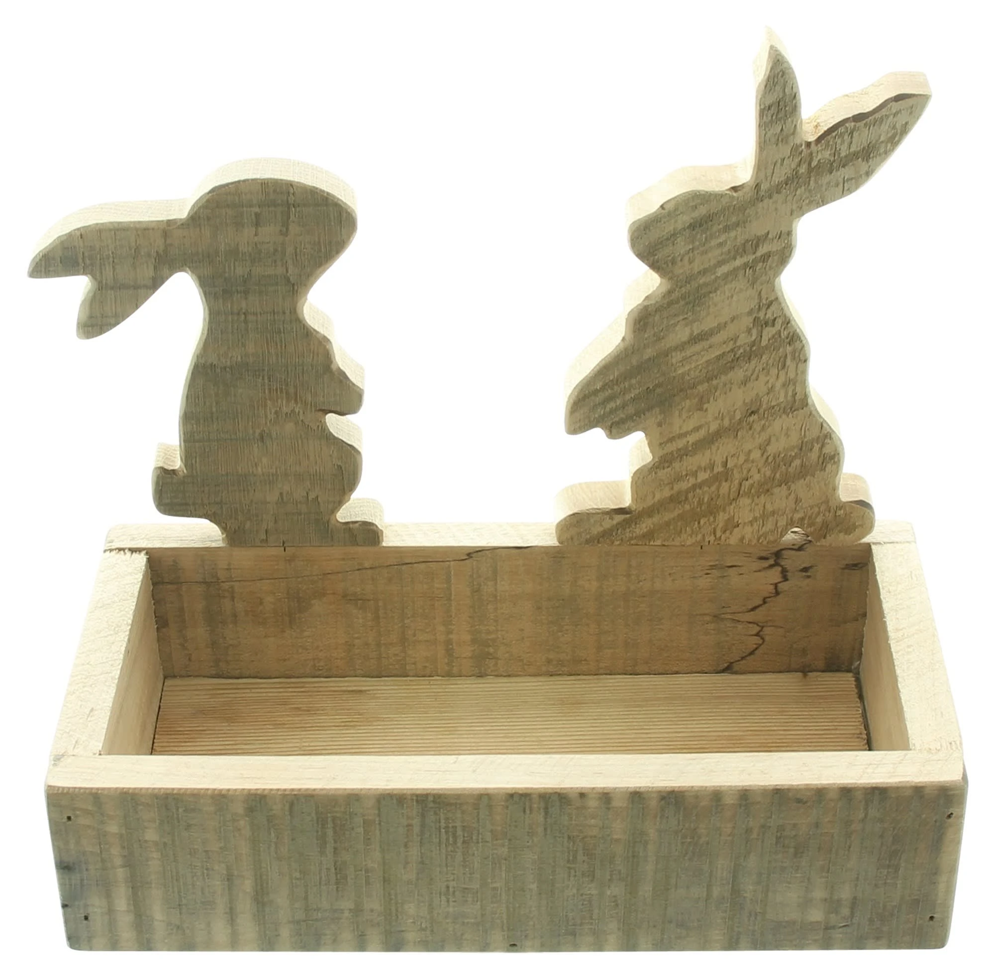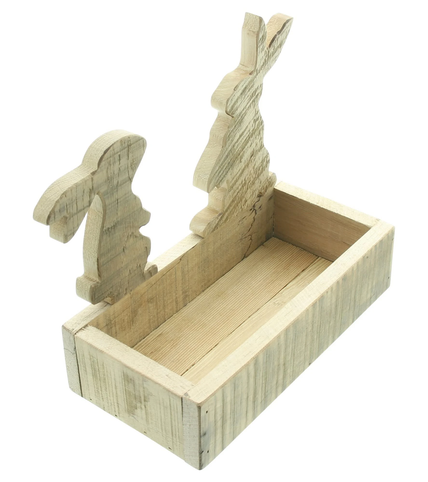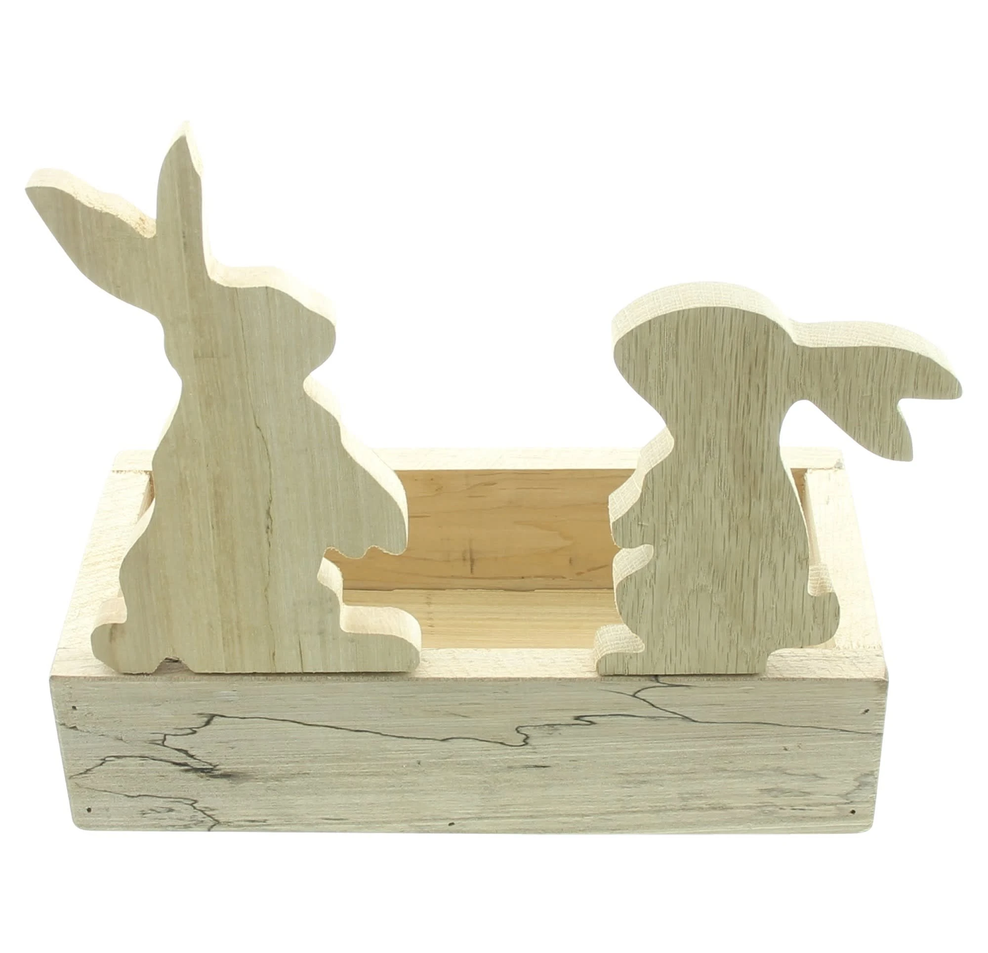 praktische Osterdeko aus recyceltem Holz, abnehmbare Hasenfiguren, natur, stabil gearbeitet