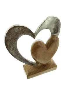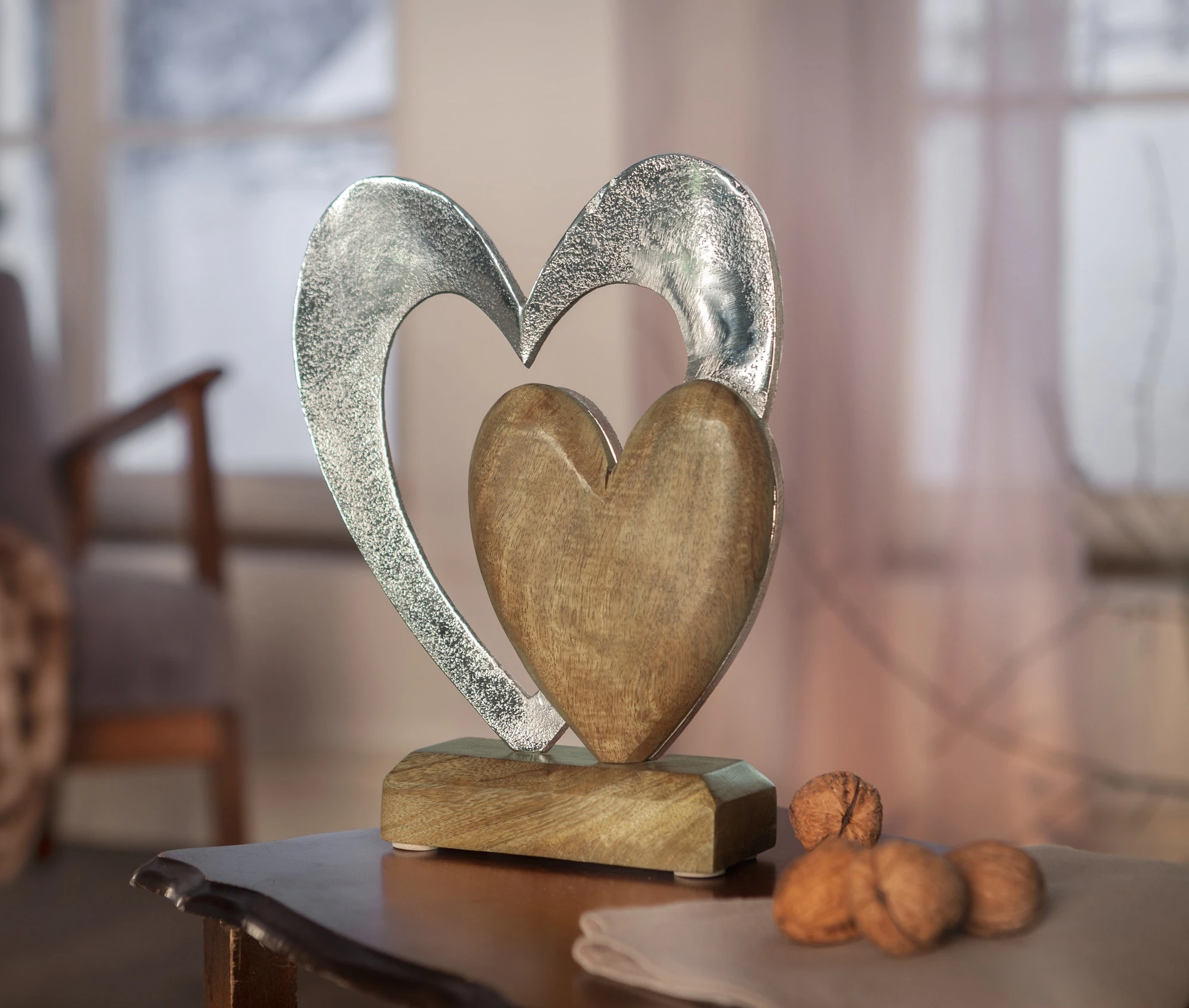 naturbelassenes Mangoholz, antik glänzendes Aluminium in Silber, möbelschonende Filznoppen