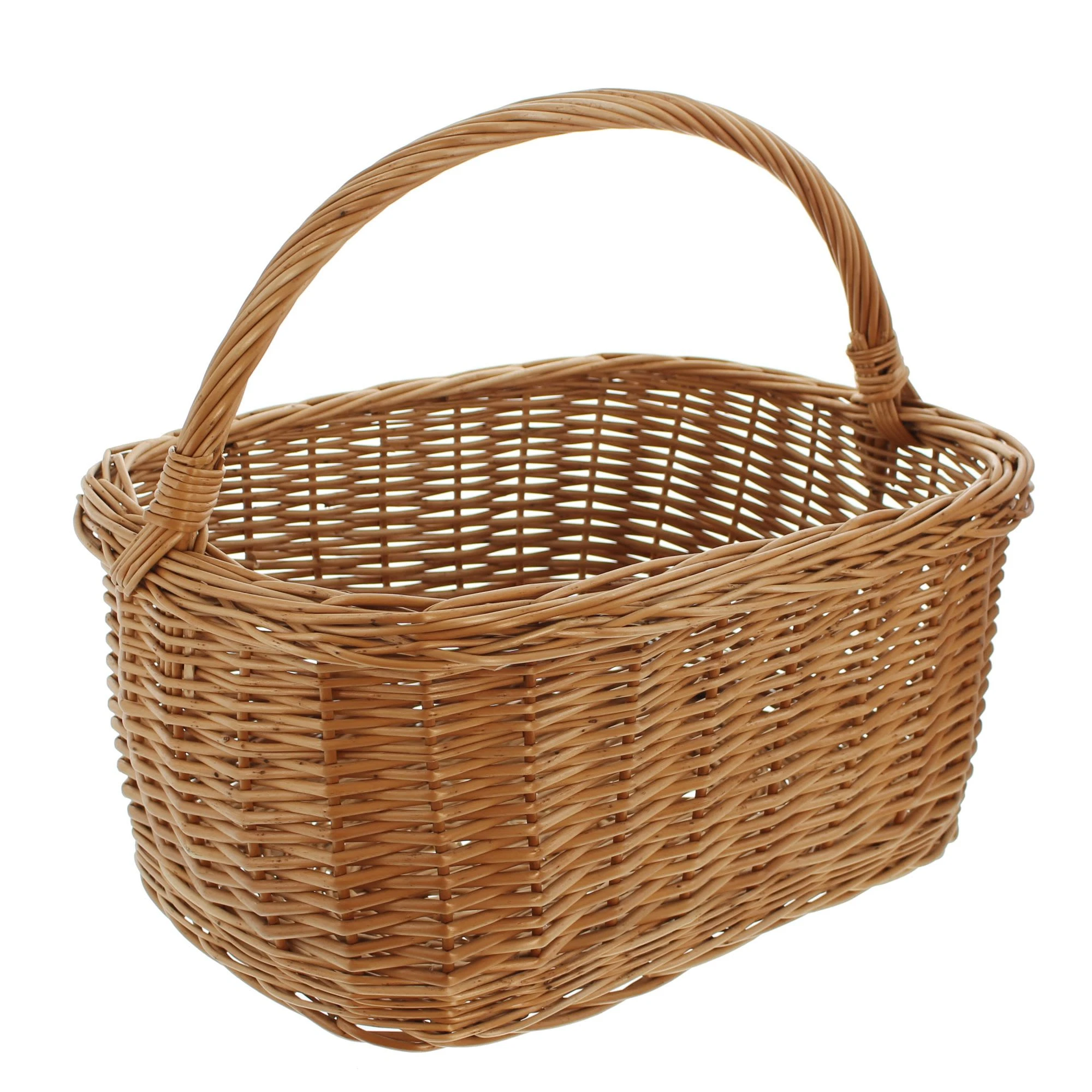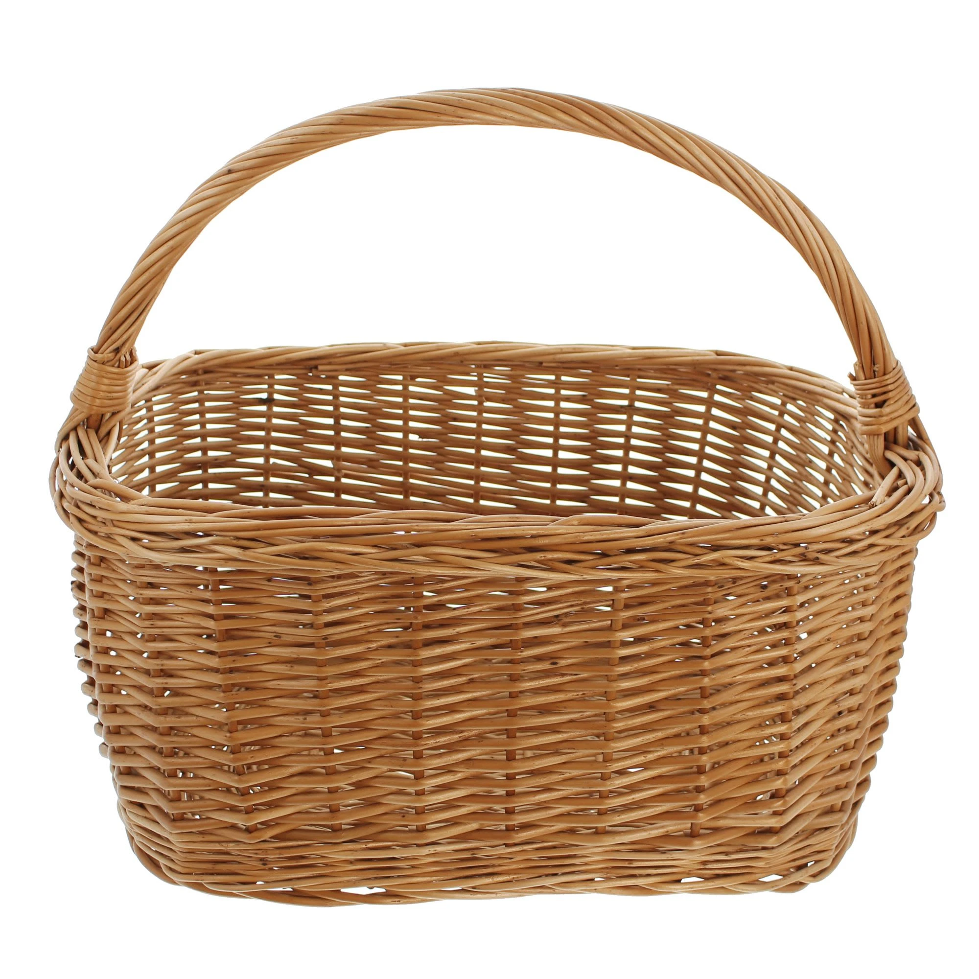 aufwändig geflochten, lackierte Vollweide in Naturton, stabiler Längsbügel