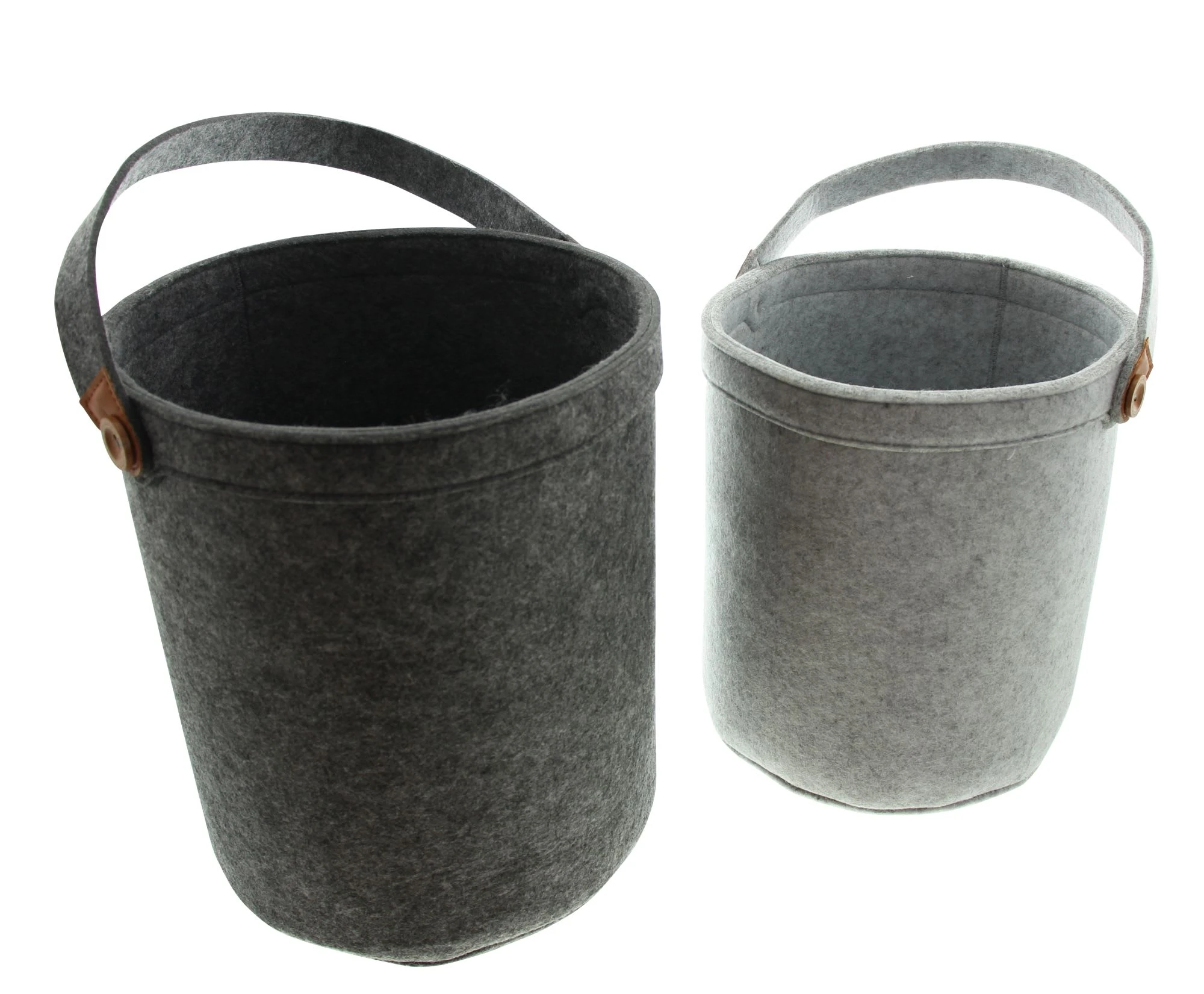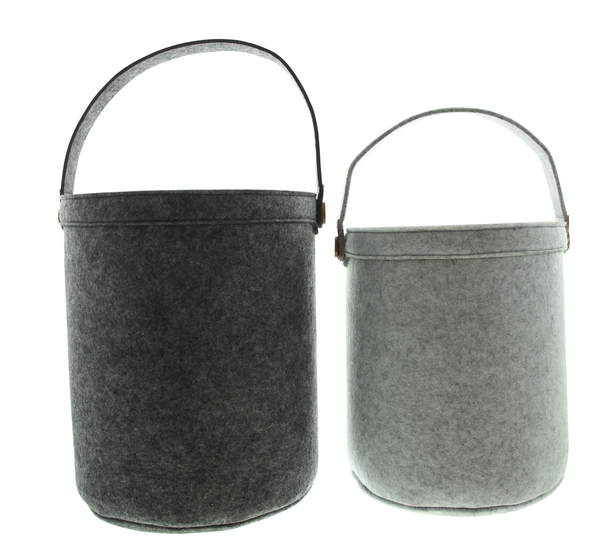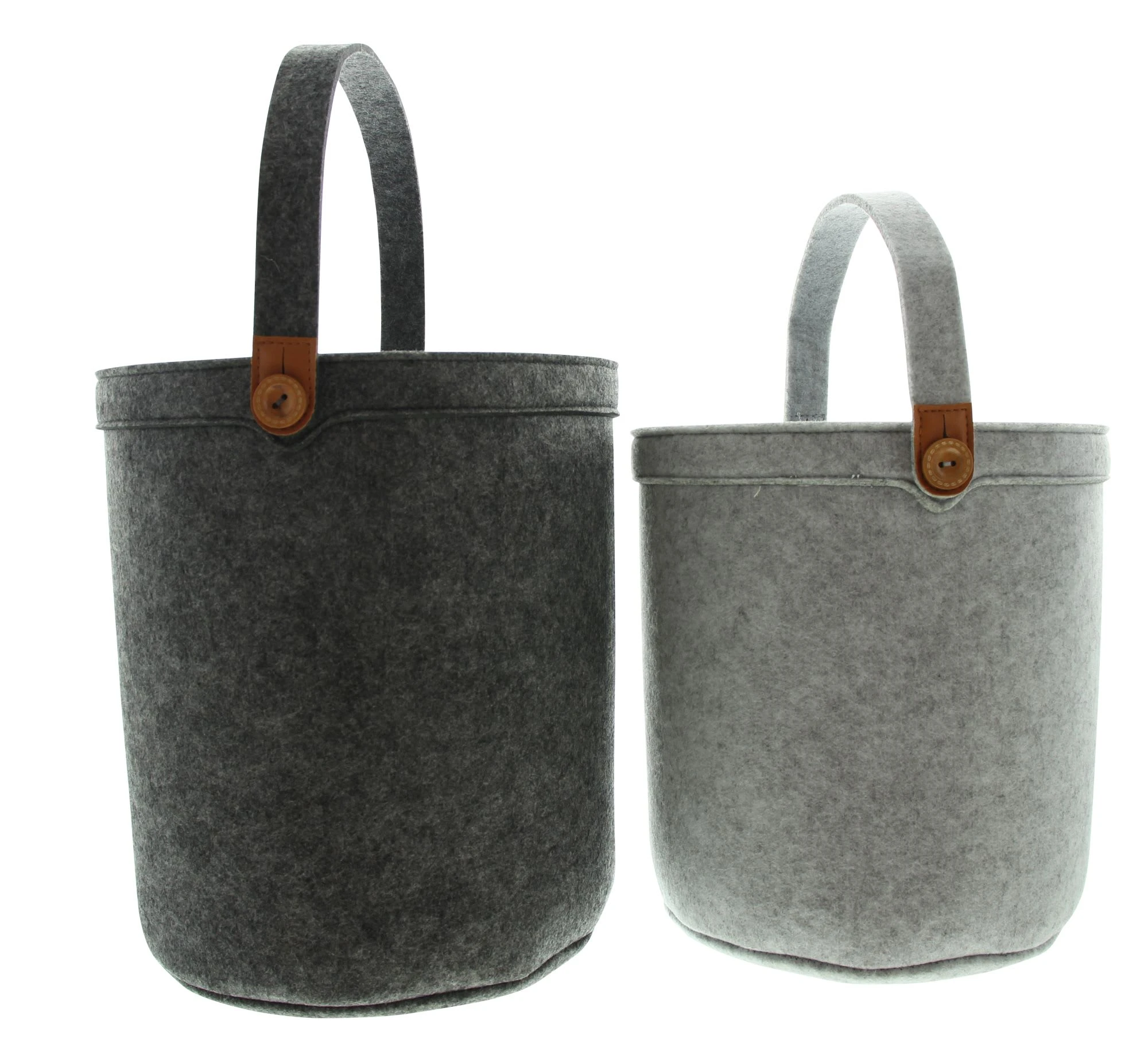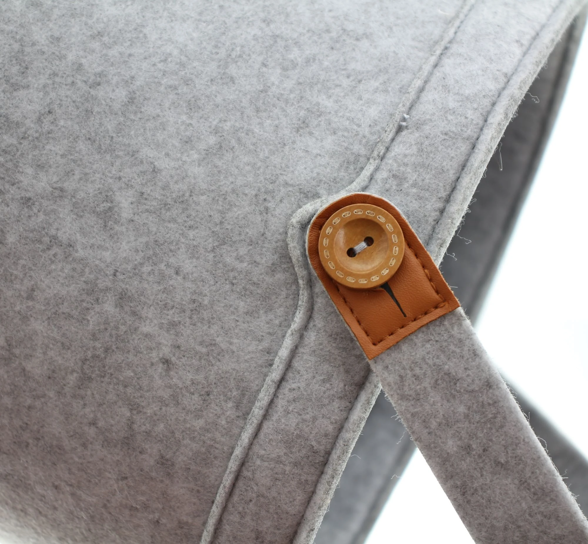hell- und dunkelgrau, abnehmbarer Henkel, Holzknopf und Lederimitat