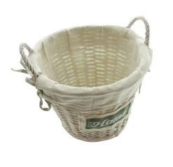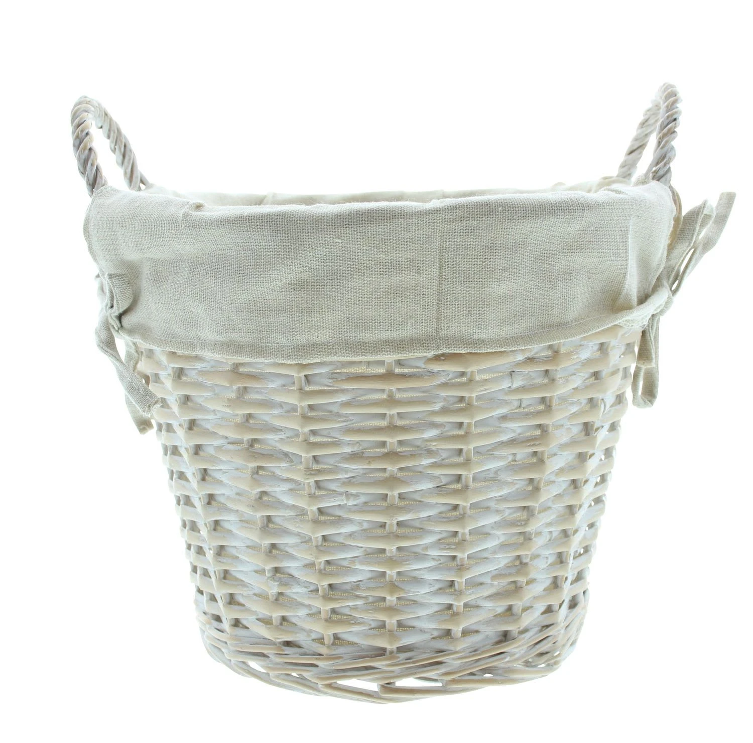 weiß gekalkte Spaltweide, seitliche Griffe, herausnehmbarer Stoffeinsatz, naturfarben