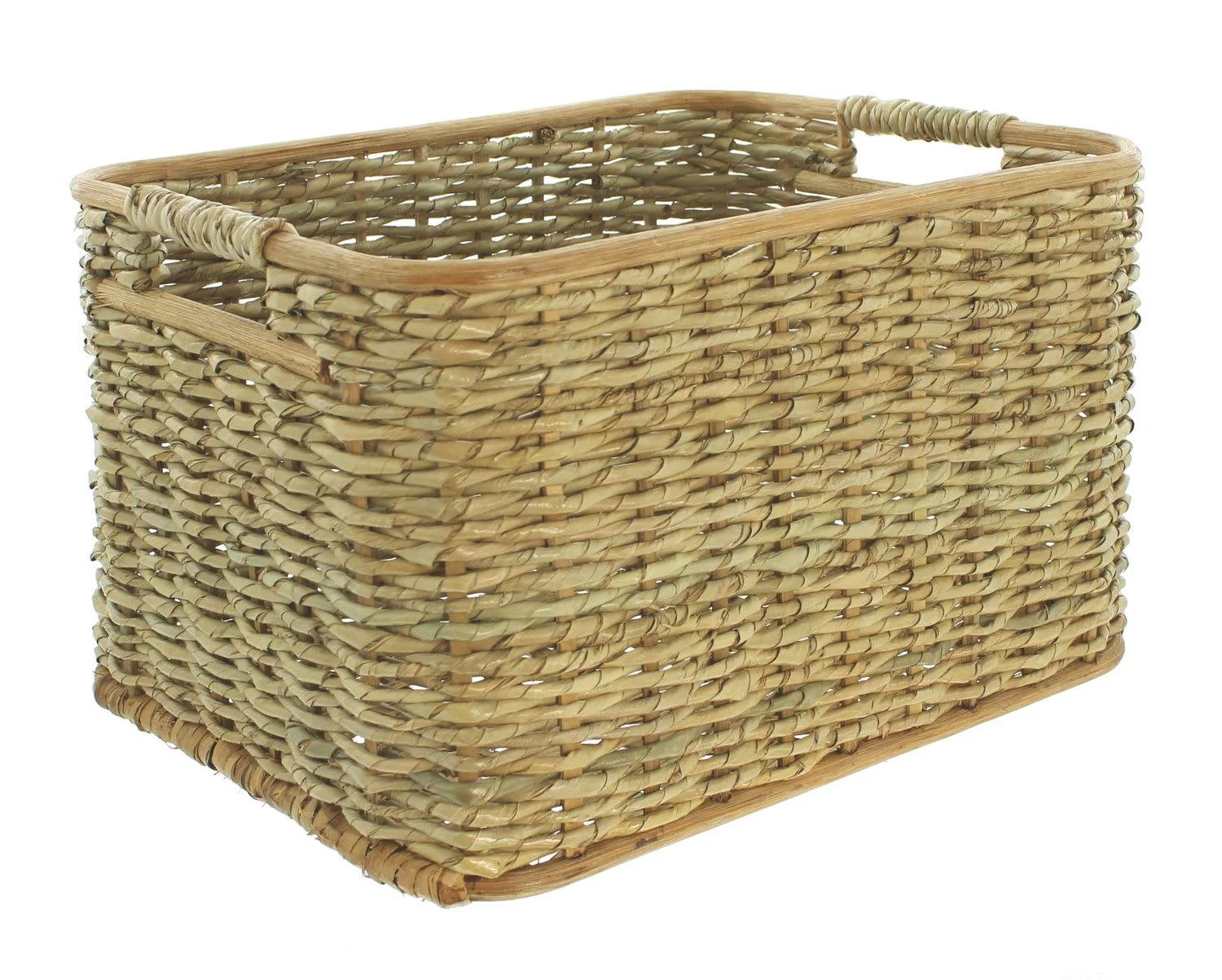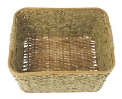 Rattan mit Schilfstroh umflochten, seitlich eingearbeitete Griffe