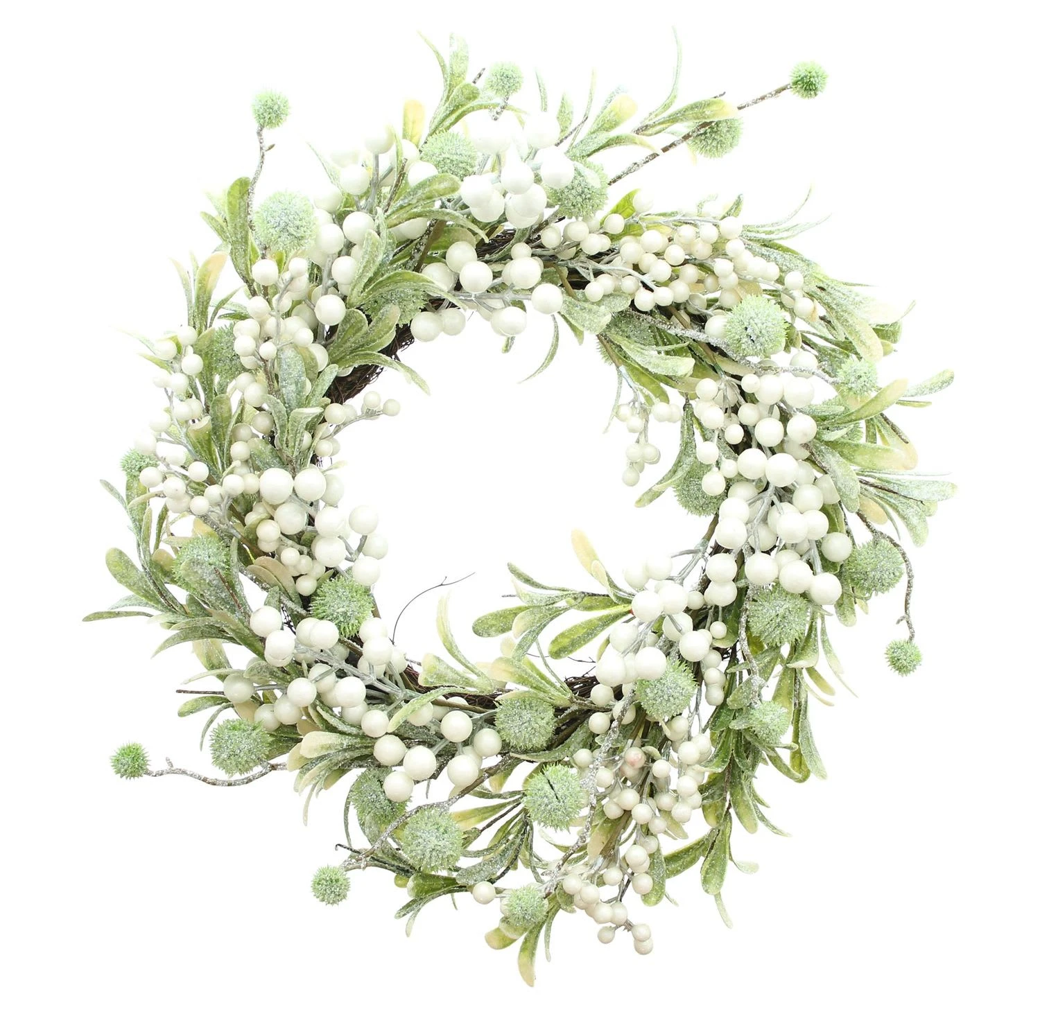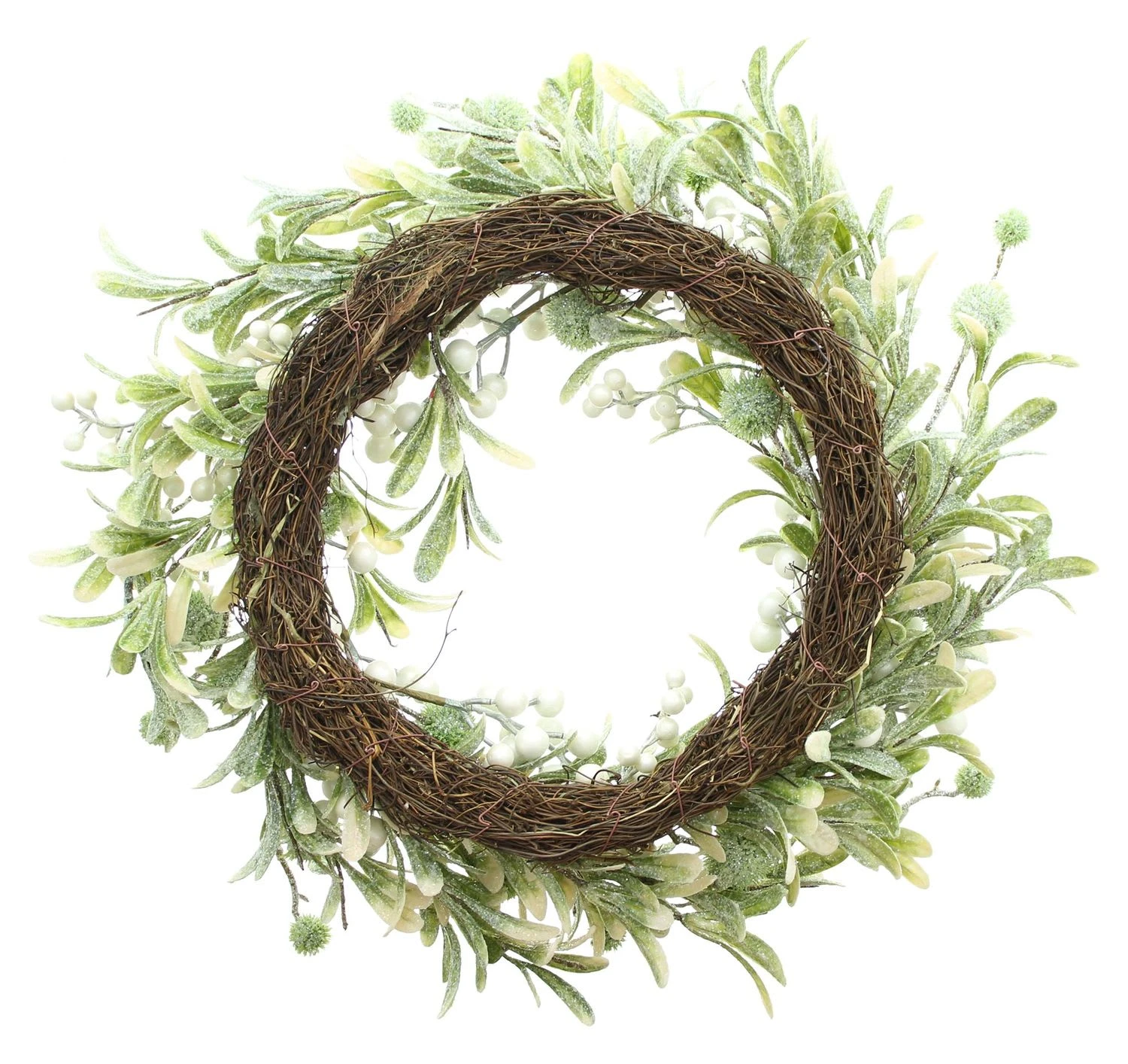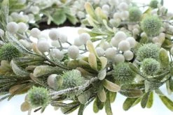 üppig dekoriert mit Beeren, Zweigen und Blättern, geeiste Optik, Glitzerfinish, Kunststoff