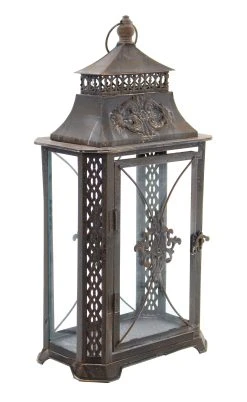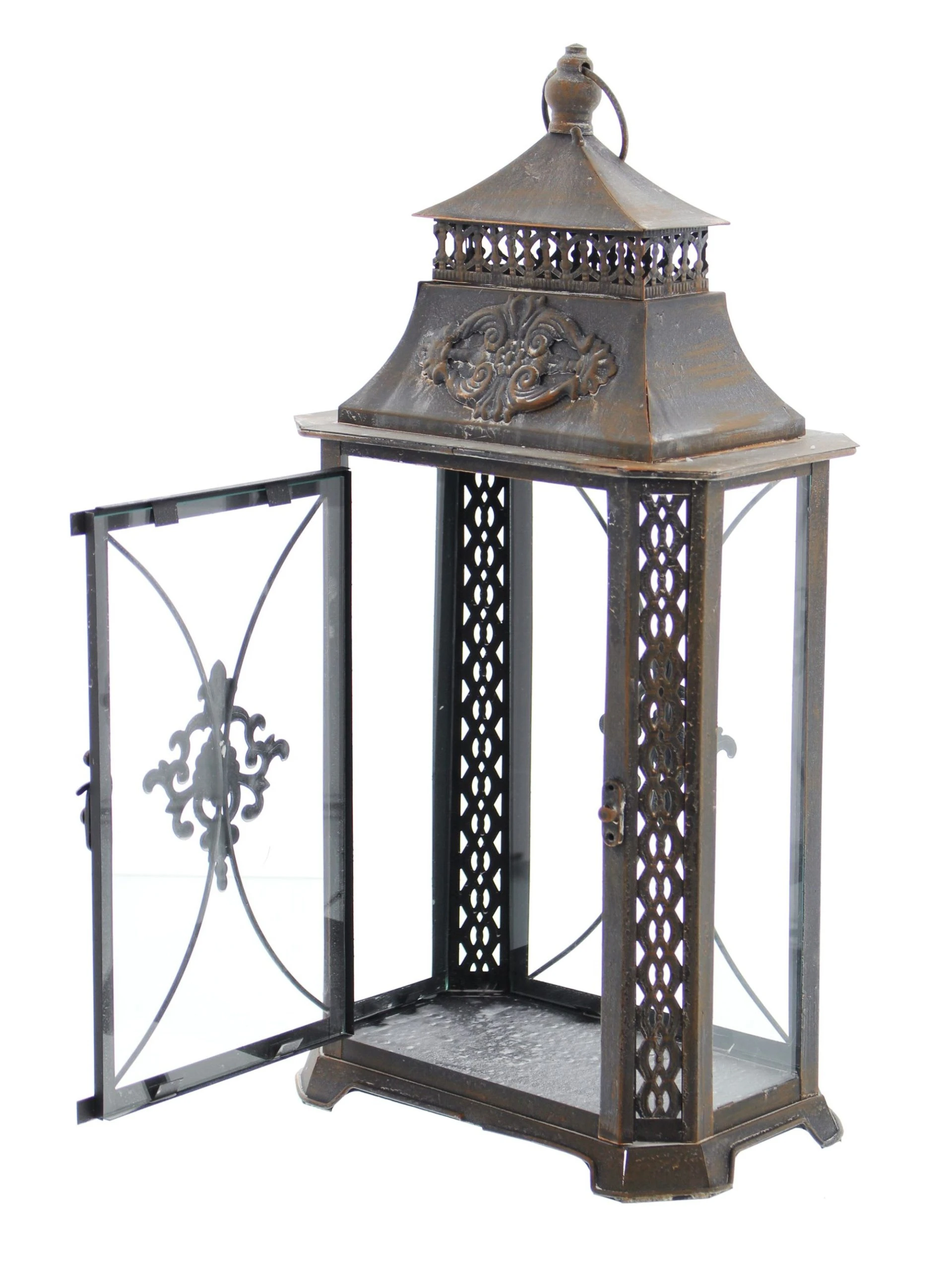 Metall in aktuellem Antik-Look mit edlem Rostfinish, 4 Glaseinsätze, extravagante rechteckige Form, aufwändig gearbeitet mit filigranem Türverschluss