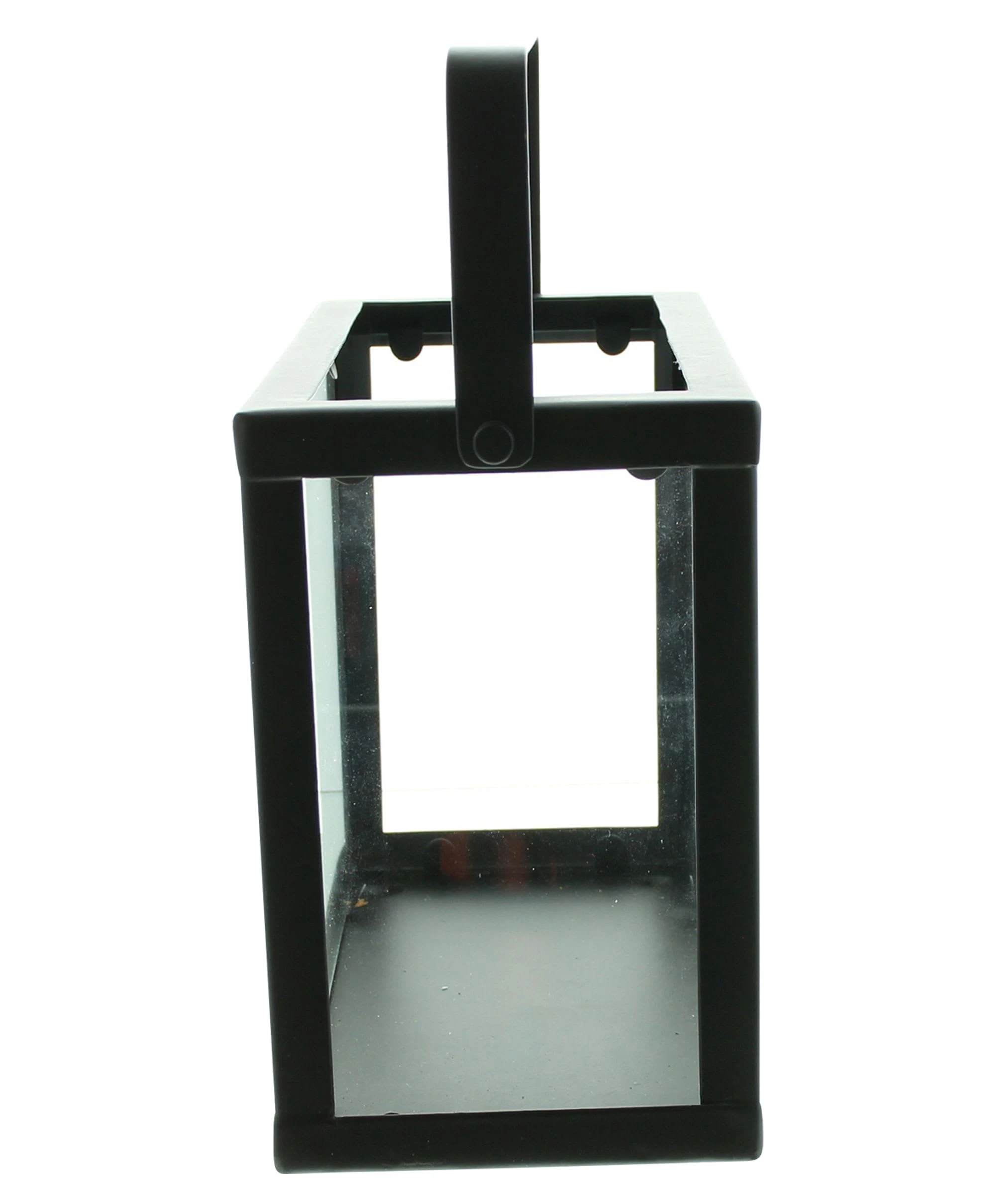 mattschwarz lackiertes Metall, klare Glaseinsätze, umlegbarer Henkel