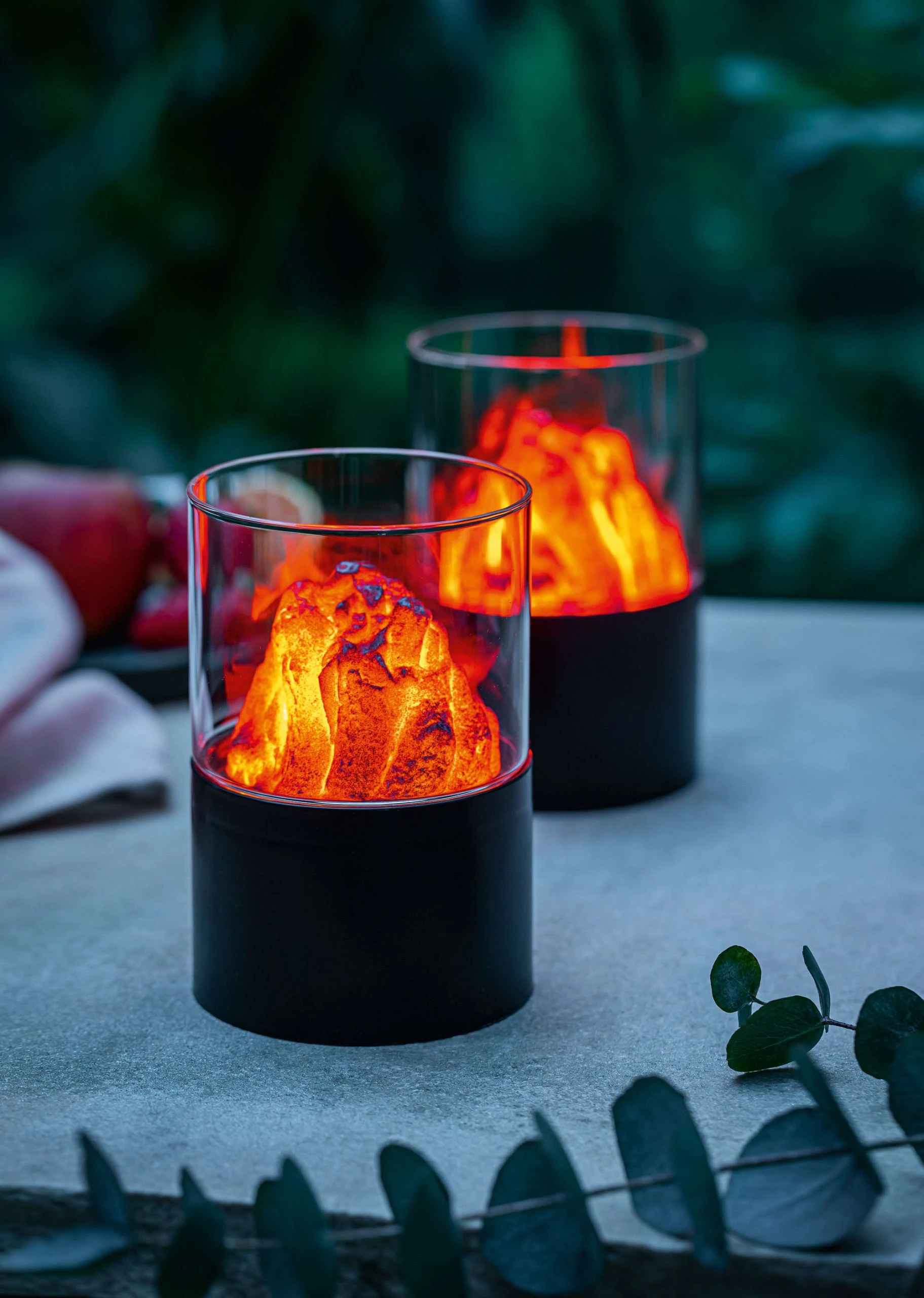 toller Flammeneffekt durch LED-Diode, abnehmbarer Glaszylinder, schwarzer Kunststoff, An-/Aus-Schalter, batteriebetrieben