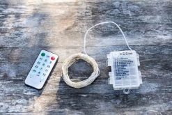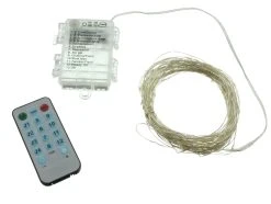 silberfarbener Draht mit 150 warmweiß leuchtenden LEDs, inkl. Fernbedienung für 8 verschiedene Programme und 4 soundgesteuerte Leuchteffekte, Timerfunktion, Zeitschaltuhr, batteriebetrieben
