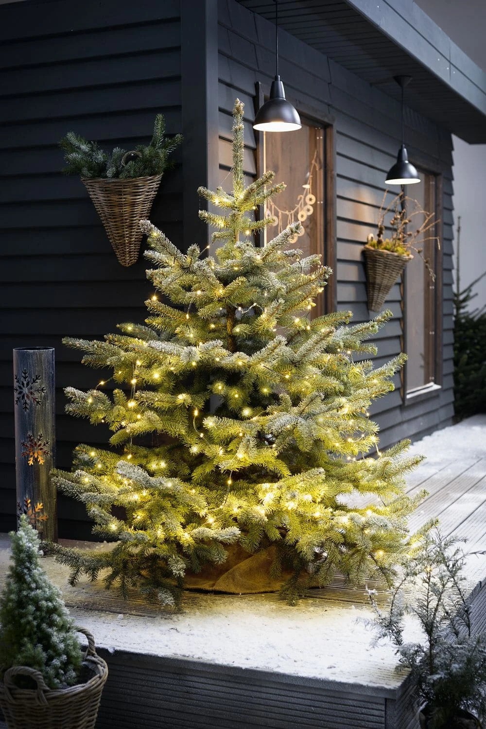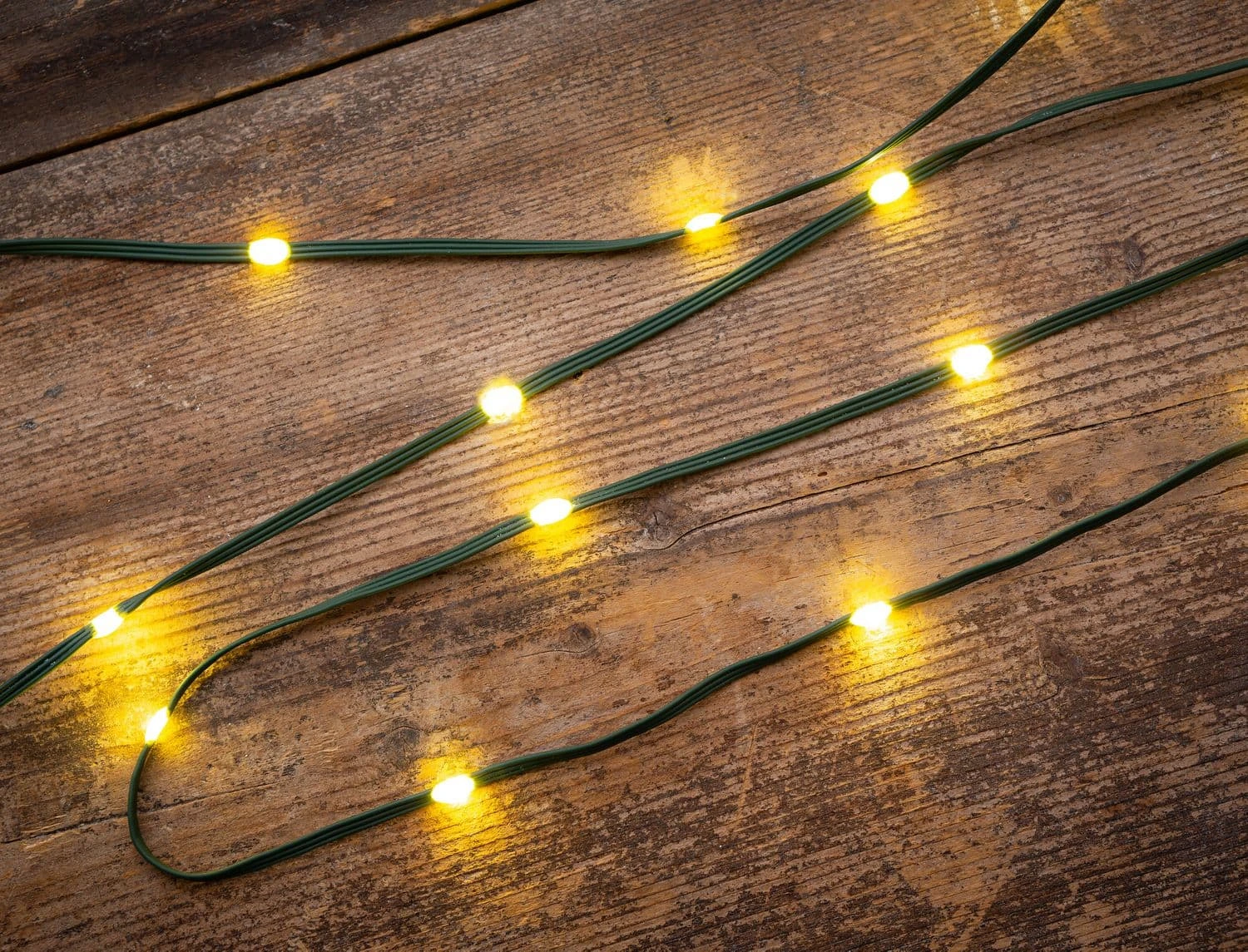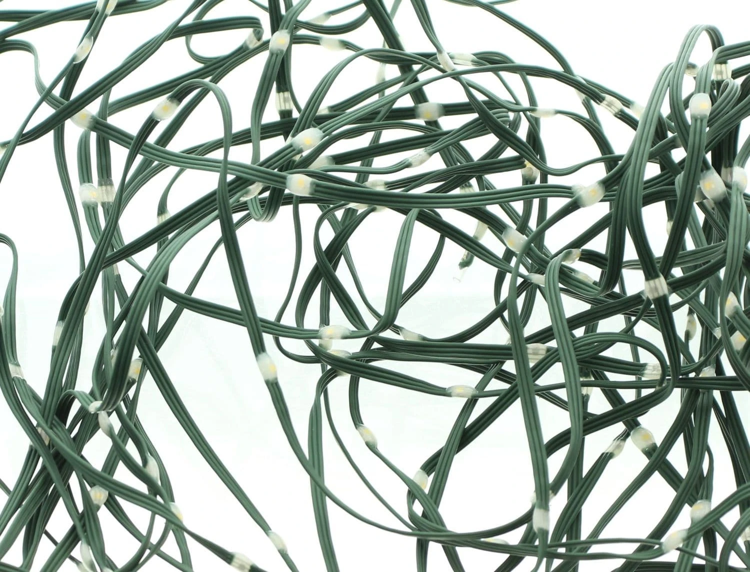 200 warmweiß leuchtende LEDs mit Trafo, Timerfunktion, grüner Kunststoff