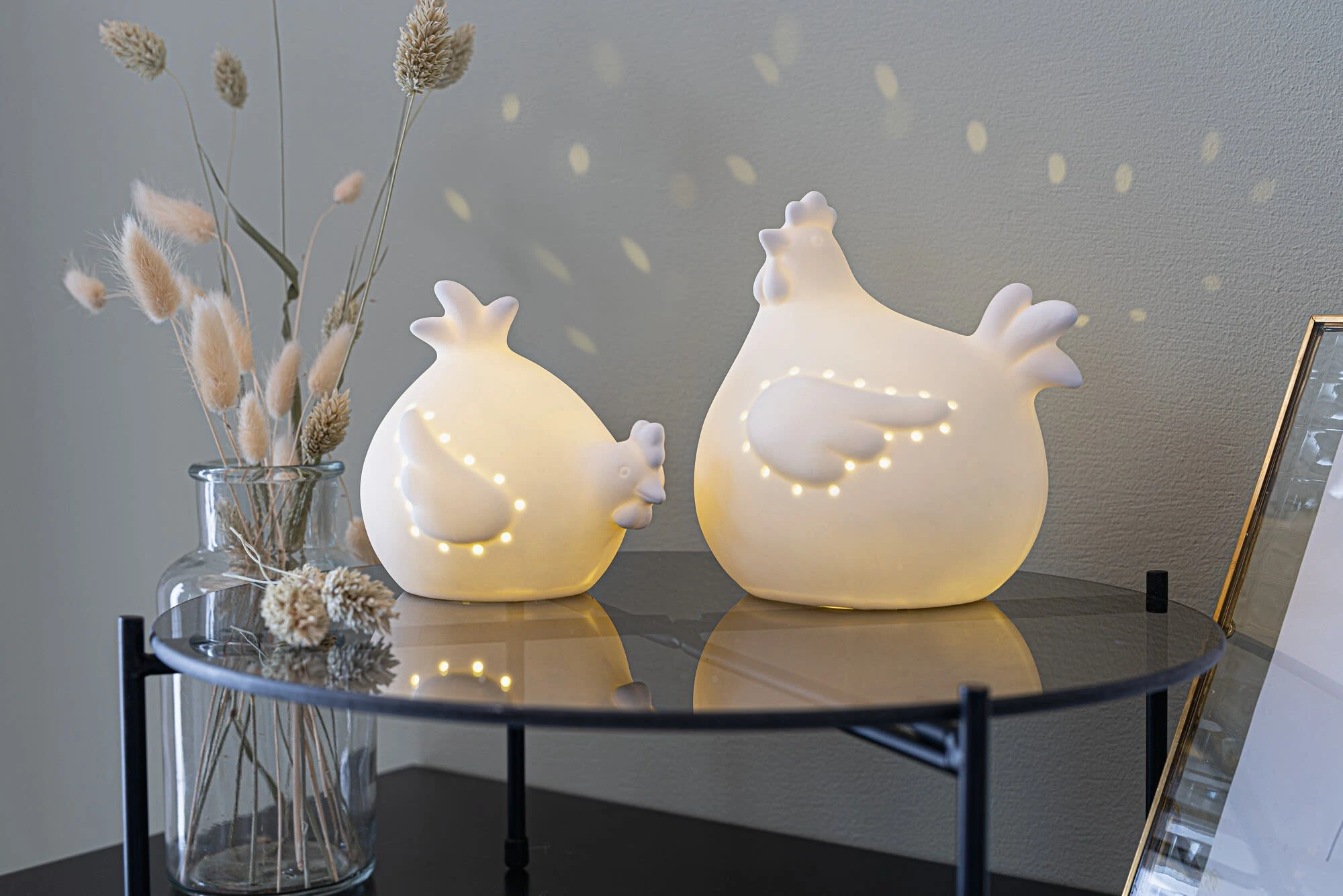 toller Leuchteffekt durch dekorative Ausstanzungen, mattweiß lackiertes Porzellan, warmweiß leuchtende LED, batteriebetrieben, An-/Aus-Schalter