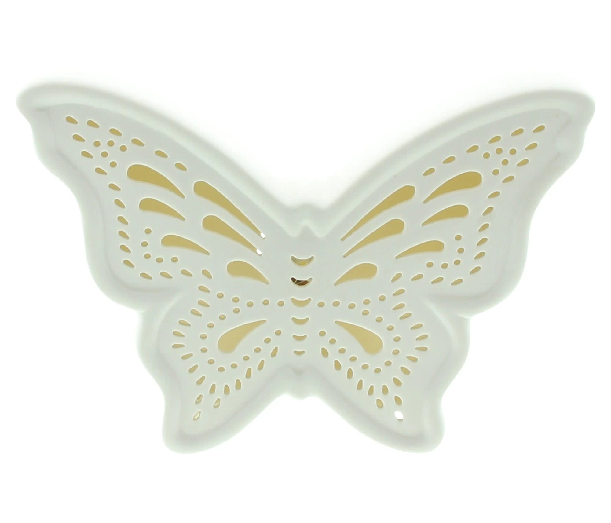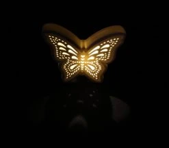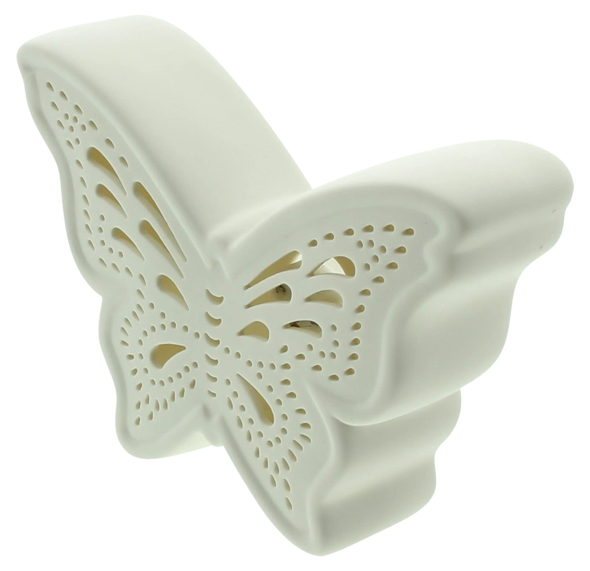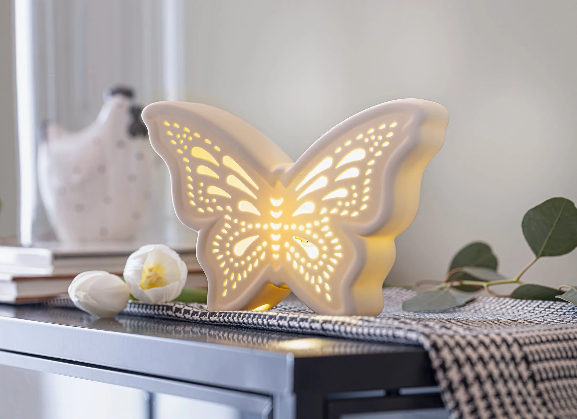 toller Leuchteffekt durch dekorative Ausstanzungen, mattweiß lackiertes Porzellan, warmweiß leuchtende LED, batteriebetrieben, An-/Aus-Schalter