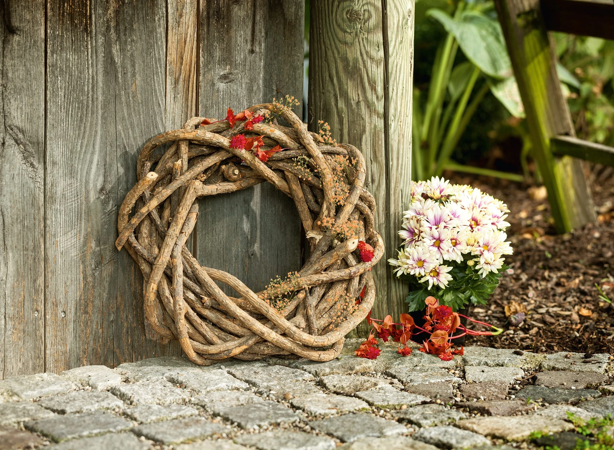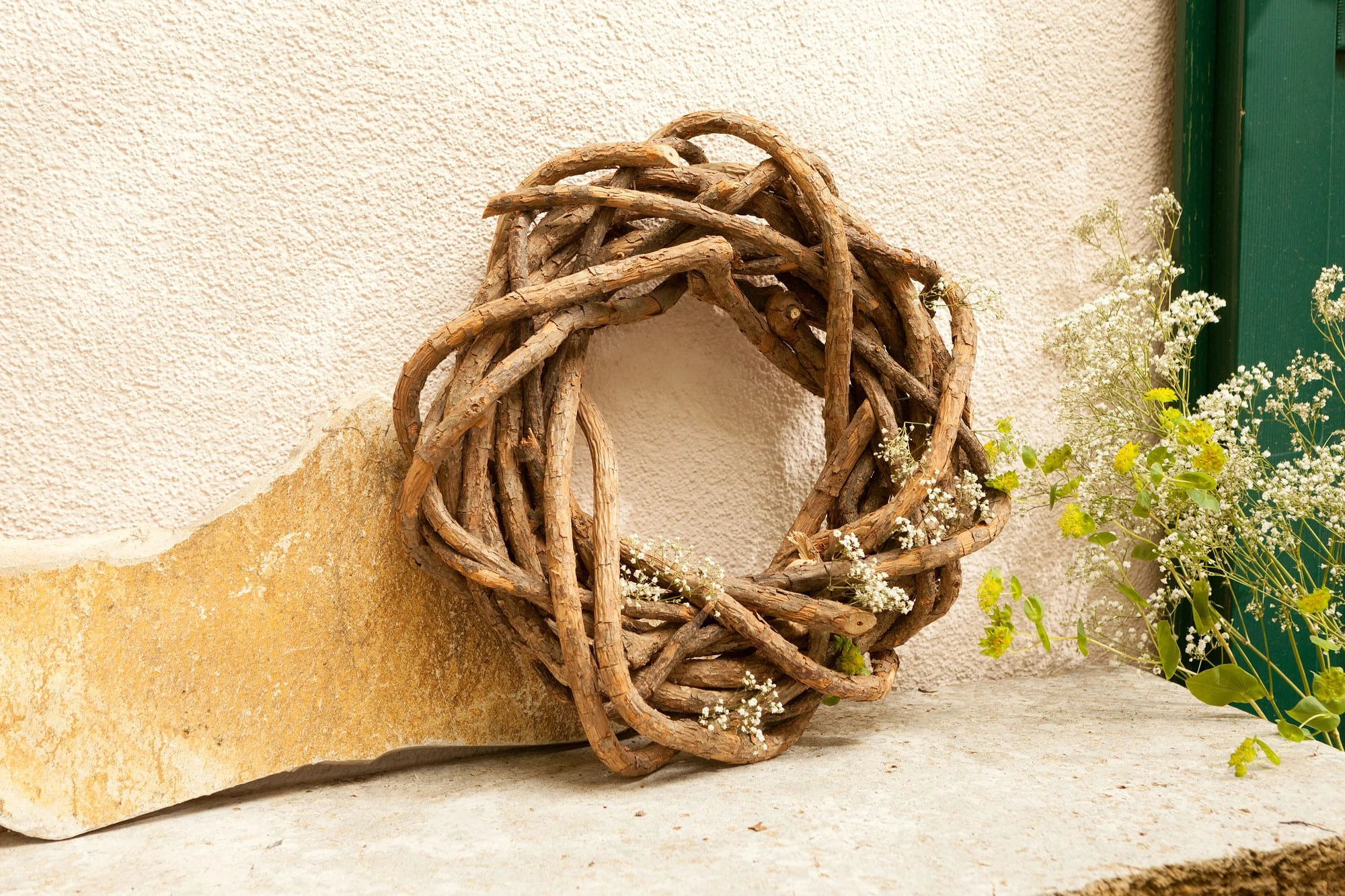 für individuelle Dekorationen, naturbelassenes Rebenholz aufwändig verflochten
