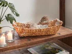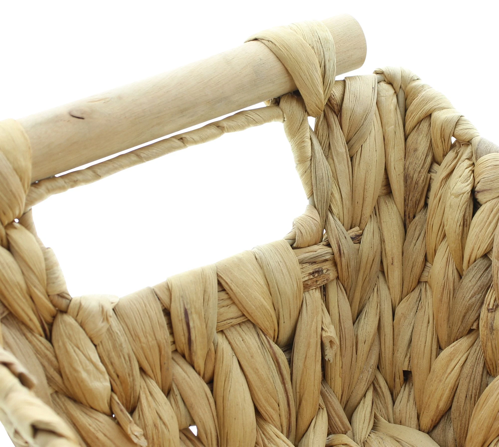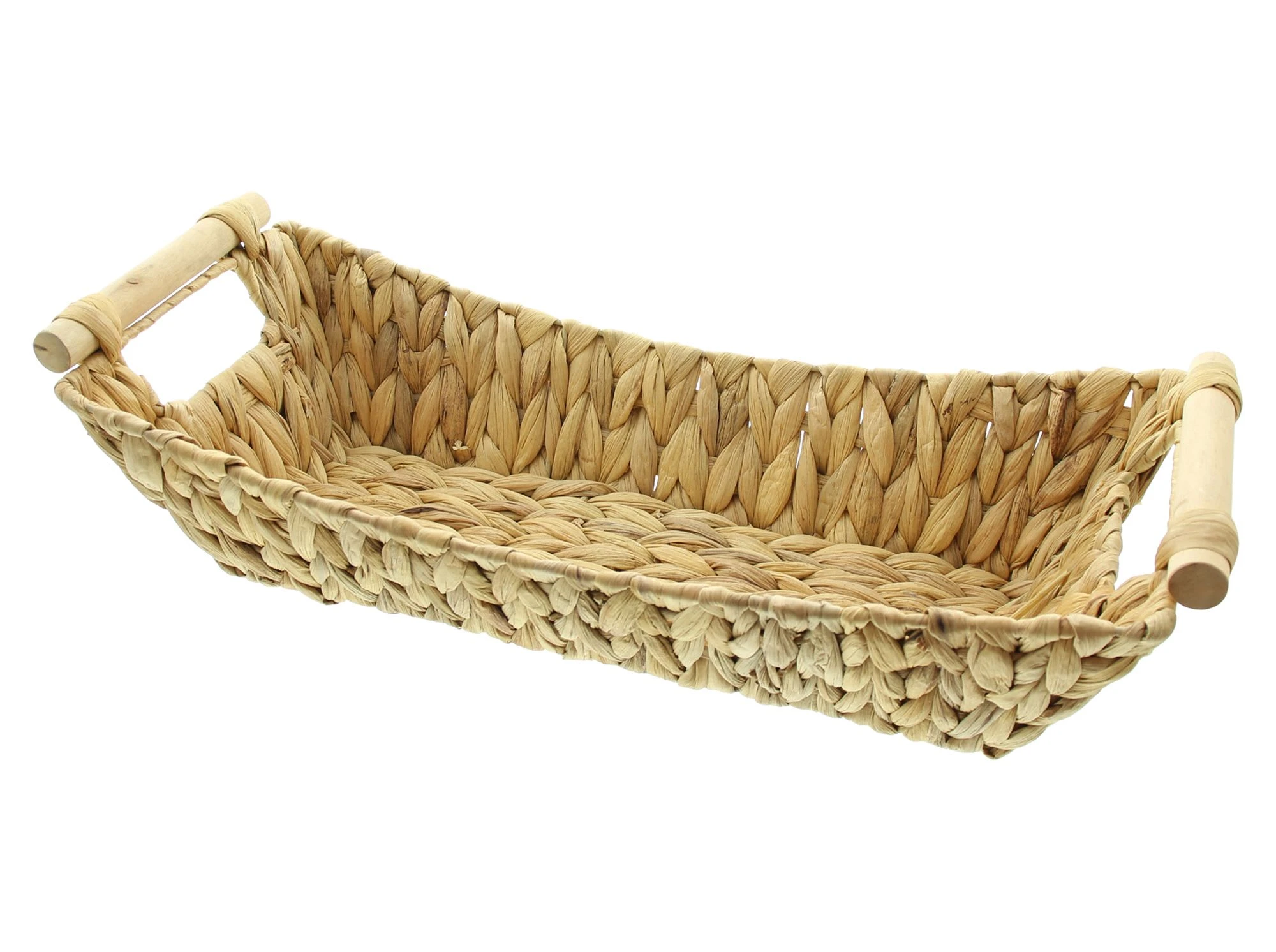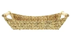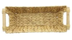 stabil auf Metallrahmen geflochten, seitliche Holzgriffe