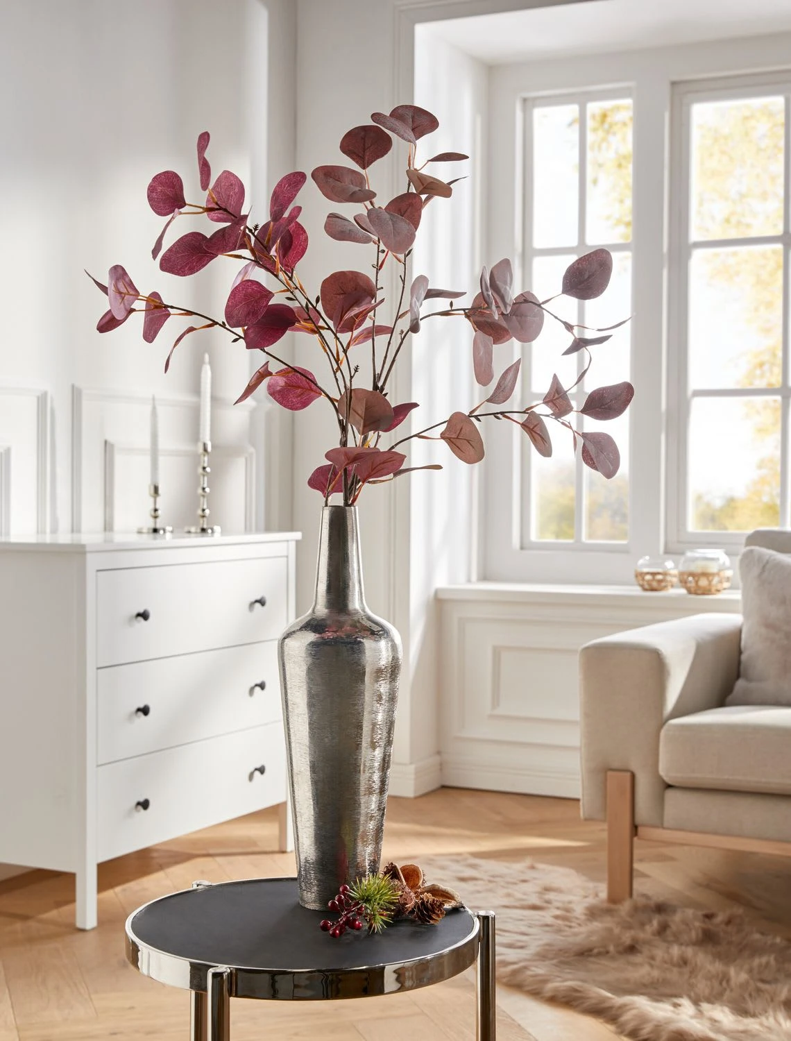 Dekopflanze in modernen Grau- und Mauvetönen, täuschend echt gearbeitet, Kunststoff