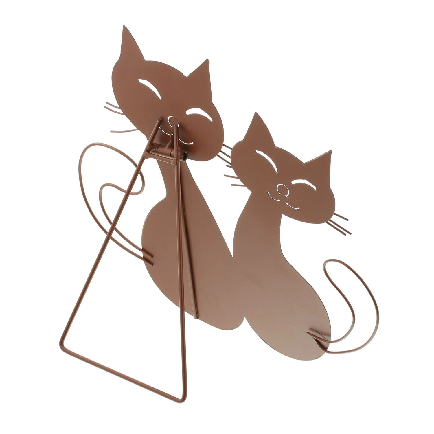 dunkelbraun lackiertes Metall in Rostoptik, klappbarer Metallständer auf der Rückseite