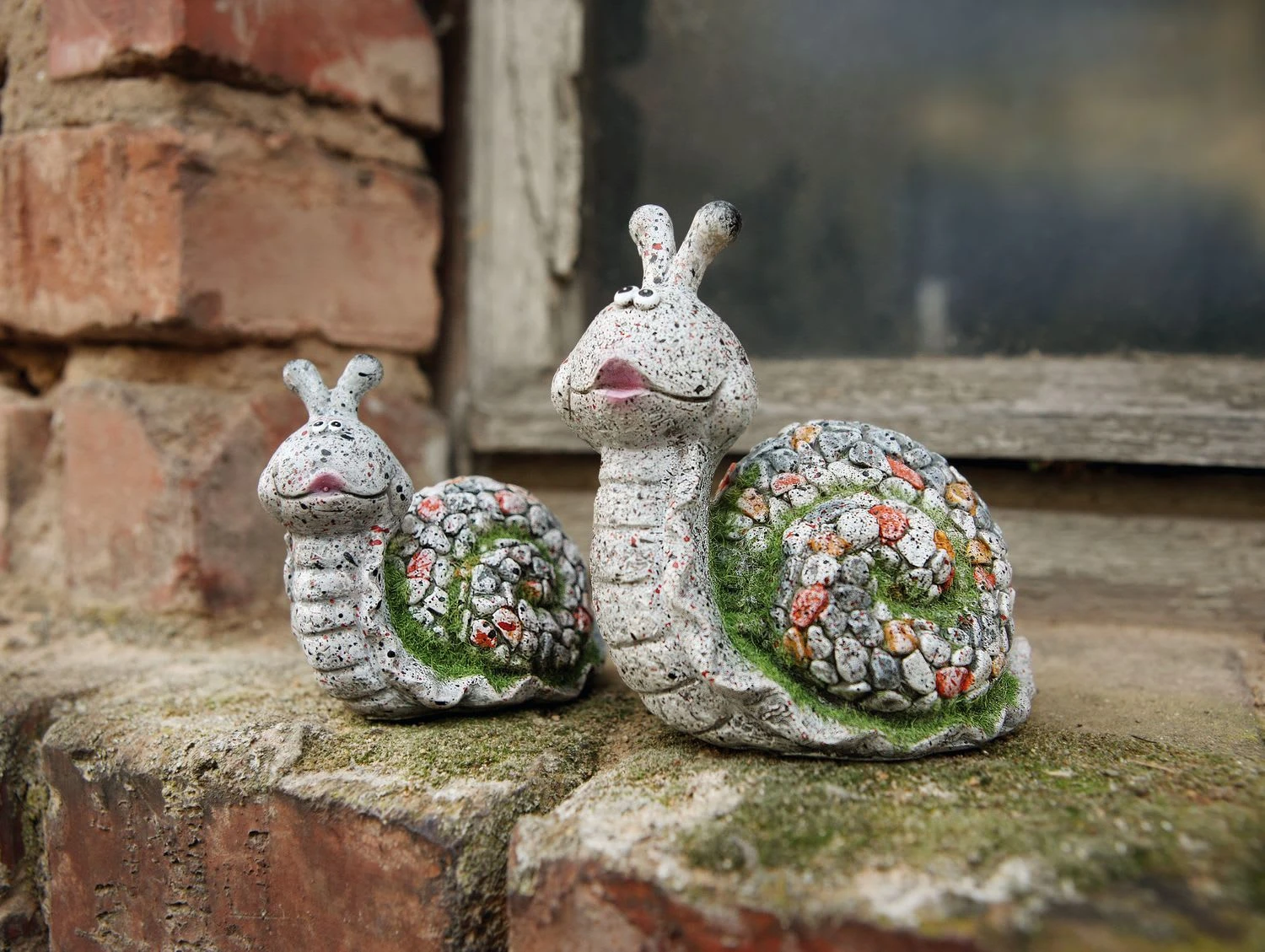 liebevoll bemaltes Polyresin in Steinoptik, teilweise grün beflockt