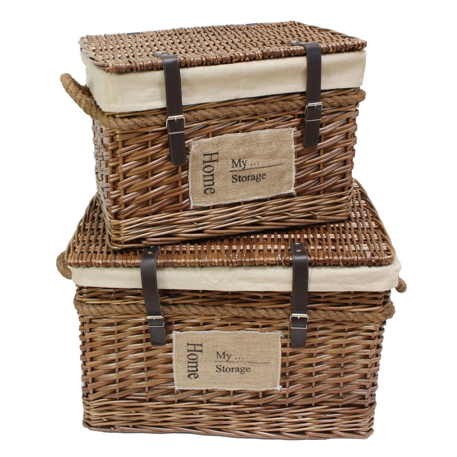tolle Aufbewahrung mit rustikalem Charme, stabil geflochtene Spaltweide mit dunkelbraunen Kunstlederriemen, herausnehmbare Textileinlage aus beigem Canvas, seitliche Griffe aus robustem Hanf