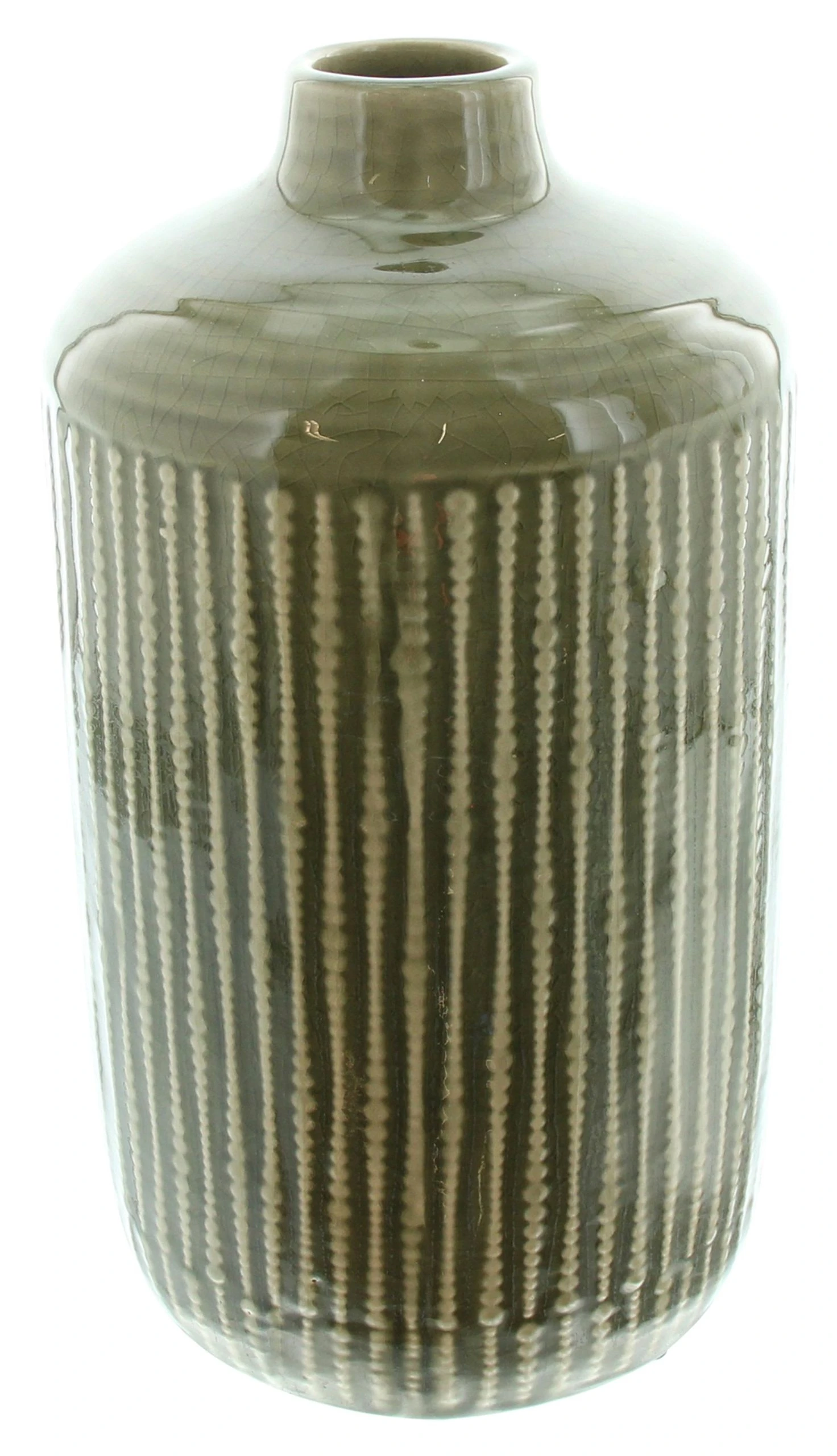 glasiertes Steingut in schönem Grünton, trendiges Streifenmuster, möbelschonende Kunststoffnoppen