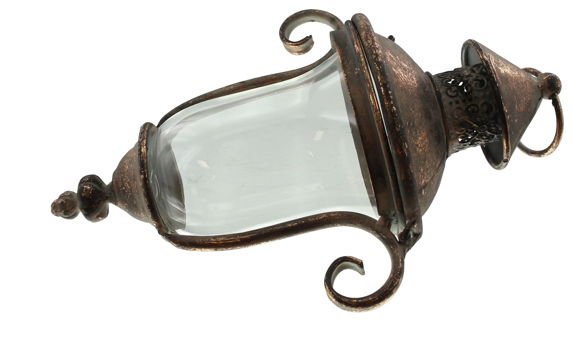 Metall in kupfer/grau, antike Patina in Roségold, aufklappbarer Deckel, herausnehmbarer Glaseinsatz, inkl. Wandhalterung