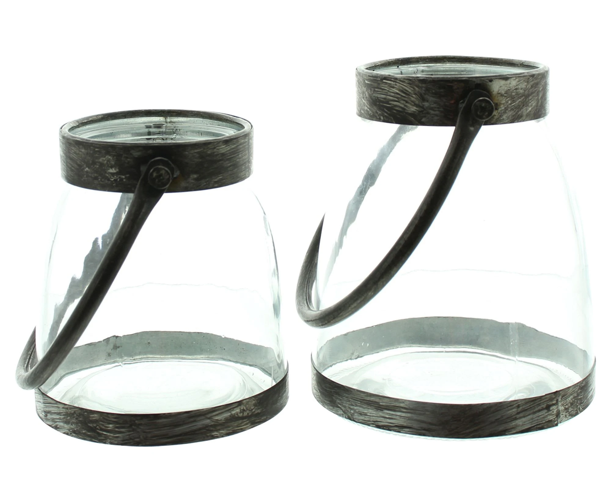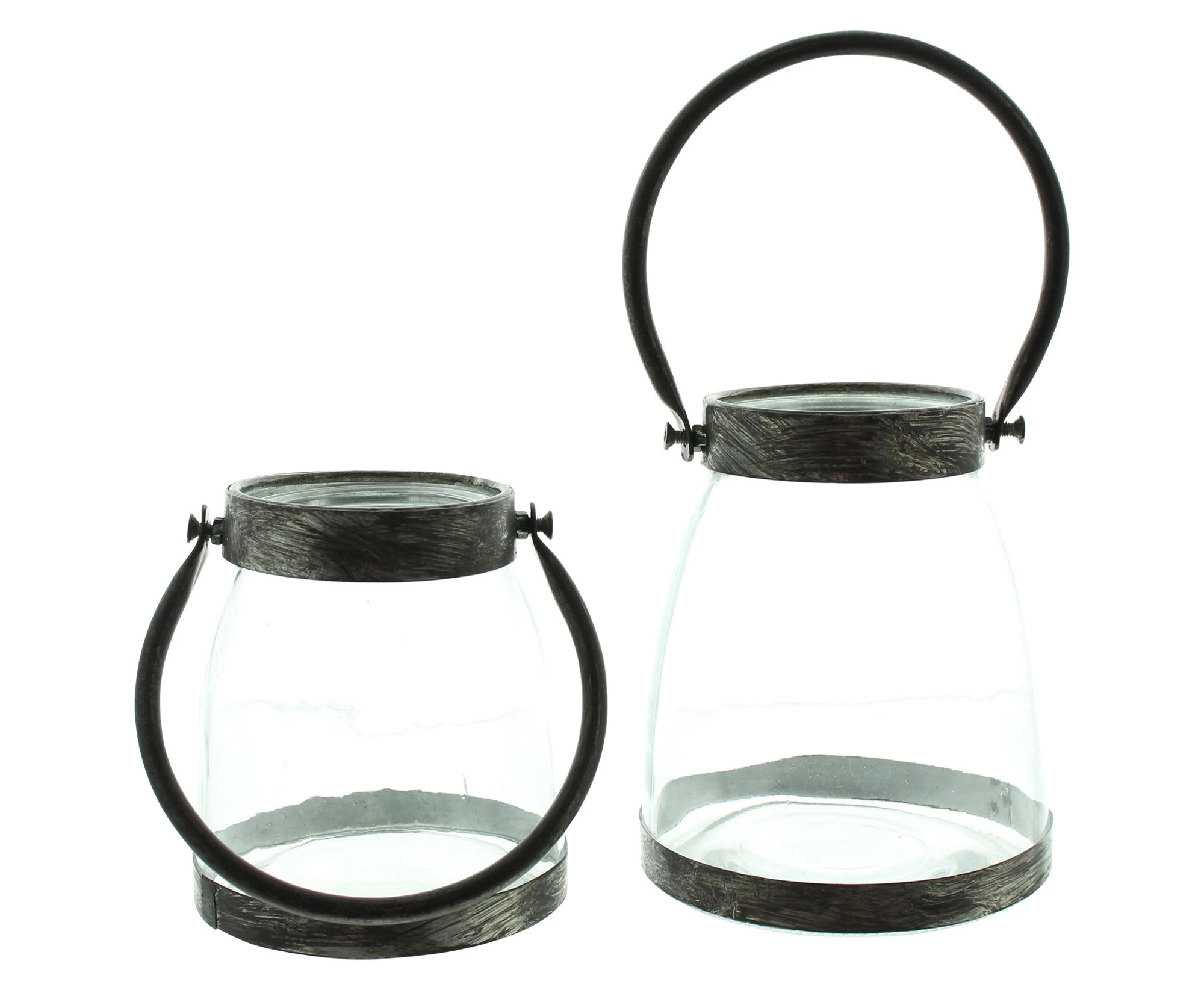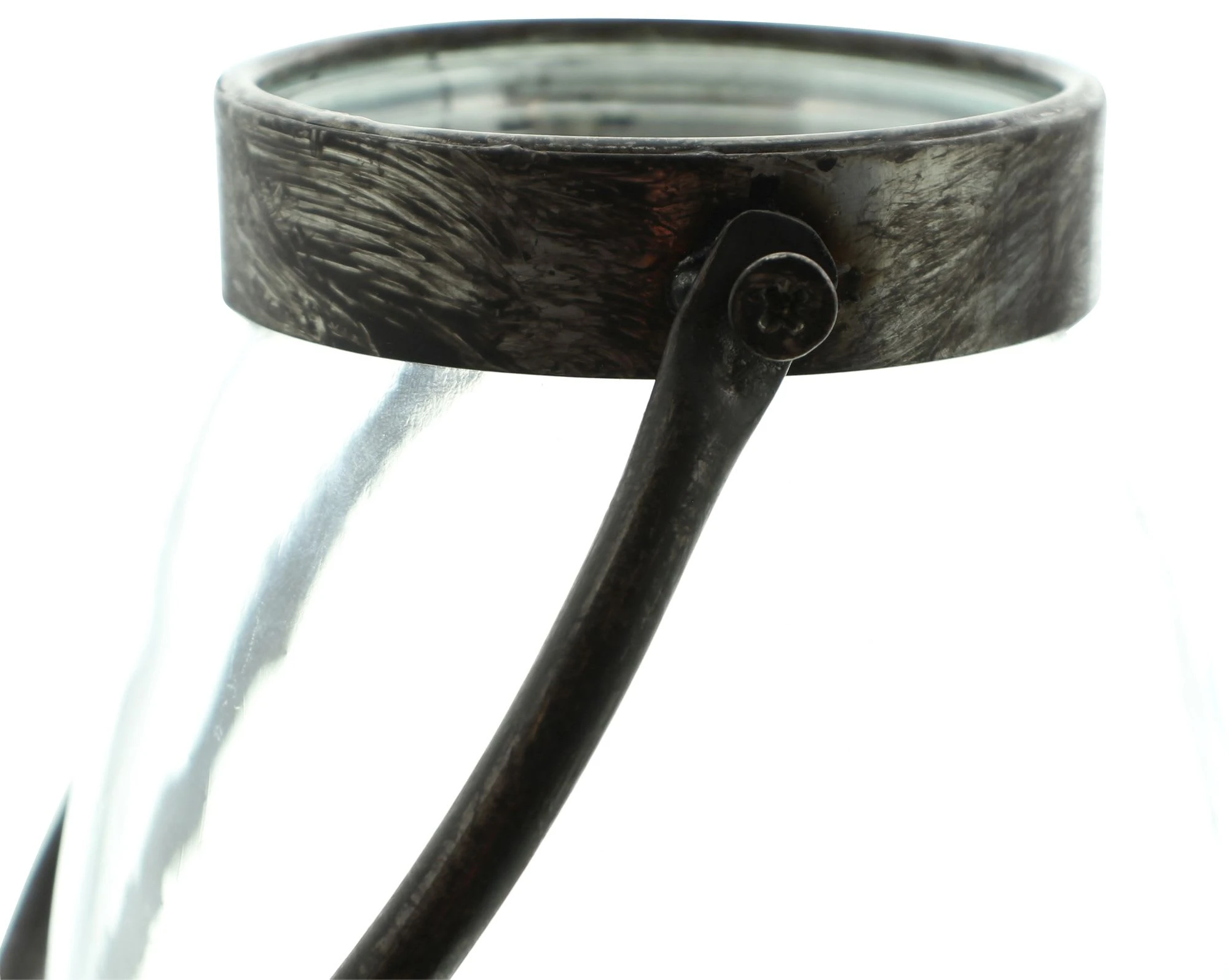 Kerzenhalter aus Glas, eingefasst mit Metall, stabiler, umlegbarer Henkel