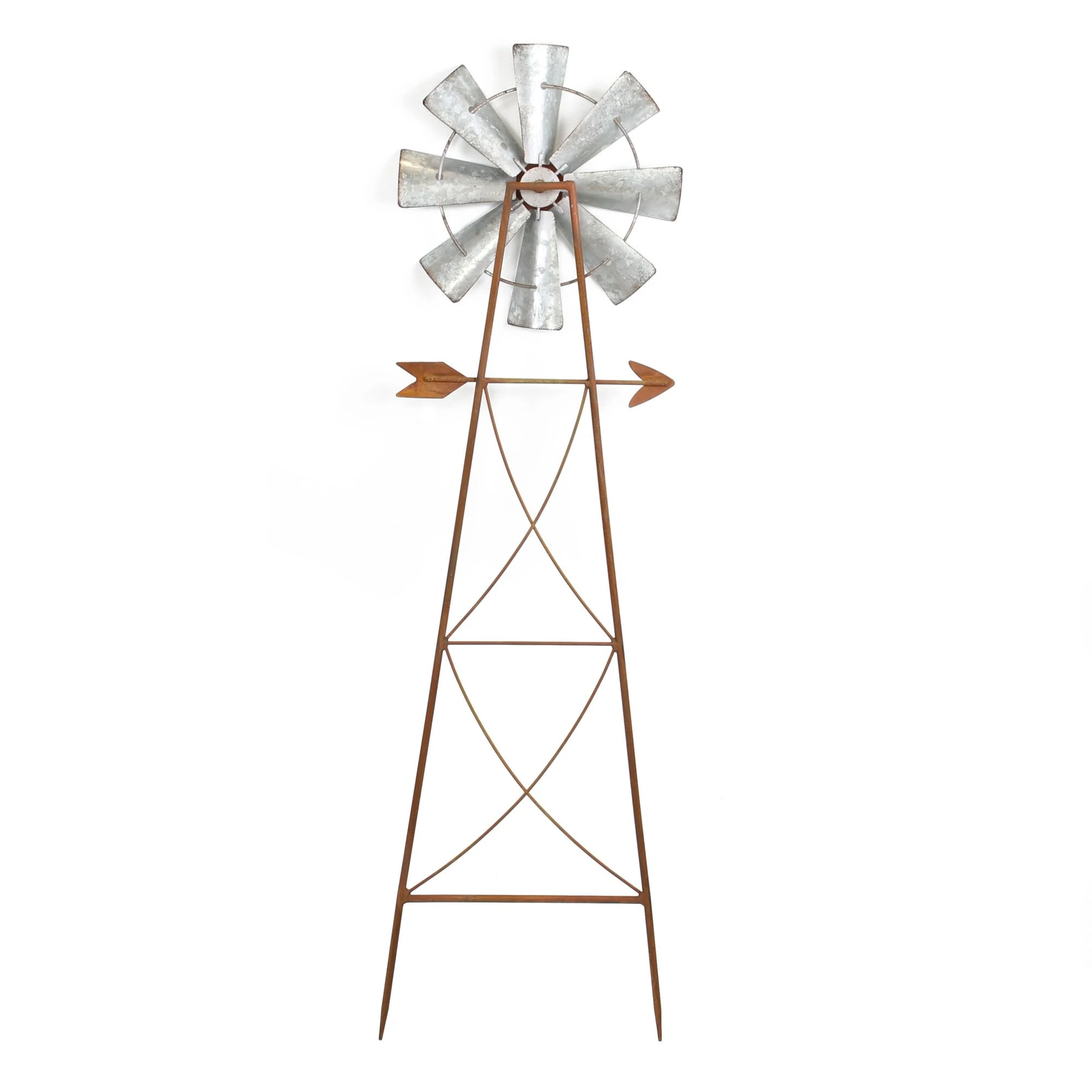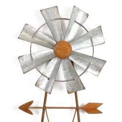 dekorativer Gartenstecker aus Metall in trendigem Rostdesign, Windrad mit leichtem Antikfinish