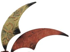 in schimmernden Bronze- und Gelbtönen aufwändig bemaltes Metall, Stab wird aus 3 Teilen zusammengesteckt