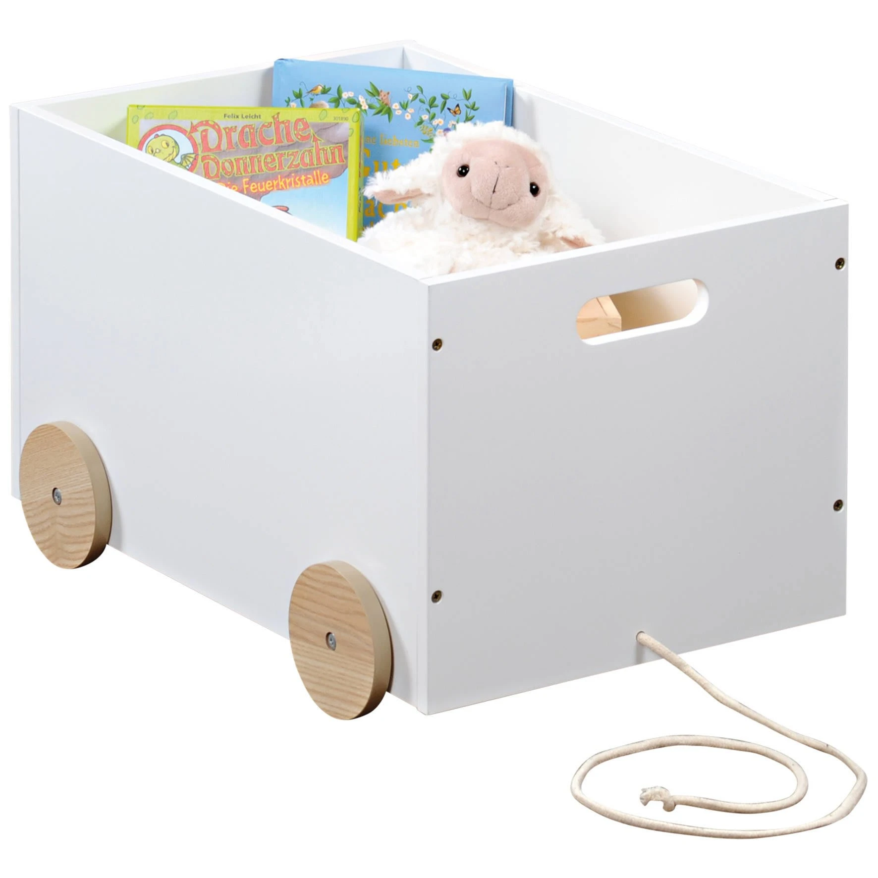in der Kiste können Sie Bücher, Spielzeug oder kleines Zubehör aufbewahren,