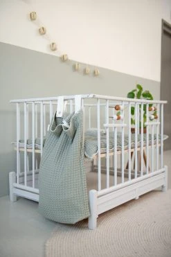Koeka stellt Laufstallzubehör in verschiedenen Materialien, Stilen und Farben her, so dass jeder ein Produkt nach seinem Geschmack finden kann. Meistens steht der Laufstall im Wohnzimmer, daher ist es schön, wenn das Laufstallzubehör zur Einrichtung passt. In dieser praktischen Laufgittertasche können Sie alles aufbewahren, was Sie wollen. Spielzeug, Windeln, Kleider, Kuscheltiere; alles, was den Laufstall zu voll macht oder worüber Sie lieber nicht stolpern möchten, können Sie darin aufbewahren. Die Aufbewahrungstasche lässt sich mit zwei Schlaufen mit Druckknöpfen einfach am Laufstall oder am Bett befestigen. Man kann den Laufgitterbeutel oben mit einem in der Mitte angebrachten Band verschließen. Der Laufgitterbeutel hat einen verstärkten losen Boden, der vor dem Waschen entfernt werden muss.