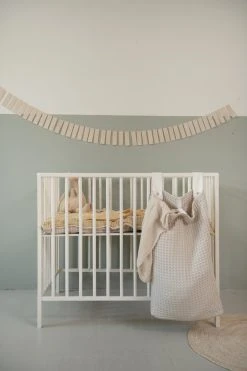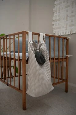 Koeka stellt Laufstallzubehör in verschiedenen Materialien, Stilen und Farben her, so dass jeder ein Produkt nach seinem Geschmack finden kann. Meistens steht der Laufstall im Wohnzimmer, daher ist es schön, wenn das Laufstallzubehör zur Einrichtung passt. In dieser praktischen Laufgittertasche können Sie alles aufbewahren, was Sie wollen. Spielzeug, Windeln, Kleider, Kuscheltiere; alles, was den Laufstall zu voll macht oder worüber Sie lieber nicht stolpern möchten, können Sie darin aufbewahren. Die Aufbewahrungstasche lässt sich mit zwei Schlaufen mit Druckknöpfen einfach am Laufstall oder am Bett befestigen. Man kann den Laufgitterbeutel oben mit einem in der Mitte angebrachten Band verschließen. Der Laufgitterbeutel hat einen verstärkten losen Boden, der vor dem Waschen entfernt werden muss.