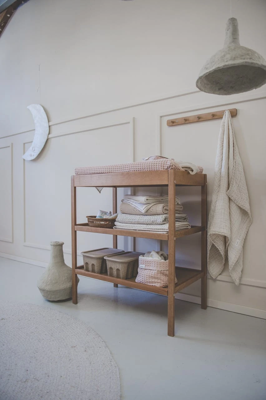 Wo bewahrst du all die losen Gegenstände auf, die man zum Wickeln oder Anziehen des Babys braucht? Mit einem Kommodenkorb hast du alles an einem Ort und in bequemer Reichweite. Der Korb ist sowohl praktisch und stylisch und ein Must-Have auf der Kommode! Koeka stellt Aufbewahrungskörbe in verschiedenen Stilen und Farben her, so dass man immer einen Korb findet, der zur Einrichtung des Babyzimmers passt. Der Korb ist auf der Innenseite verstärkt, so dass er nicht zusammenfällt und man kann den Rand umklappen, um einen anderen Look zu schaffen.