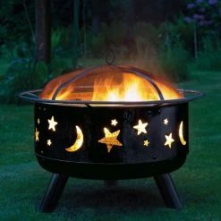 Die massive Stahlkonstruktion schützt durch eine Abdeckhaube mit Meshgitter vor Funkenflug. Durch den umlaufenden Tragerand kann man den Feuerkorb problemlos im Garten umstellen. Die ‘stars und moon’ – Motive garantieren ein attraktives Lichtspiel. Ein kleiner Schürhaken, u.a. zum Anheben der Abdeckhaube, ist im Lieferumfang enthalten.