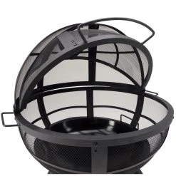 Die massive Stahlkonstruktion schützt durch eine Abdeckhaube mit Meshgitter vor Funkenflug. Durch die Tragegriffe kann man den Feuerkorb problemlos im Garten umstellen. Eine Wetterschutzhaube ist im Lieferumfang mit enthalten.