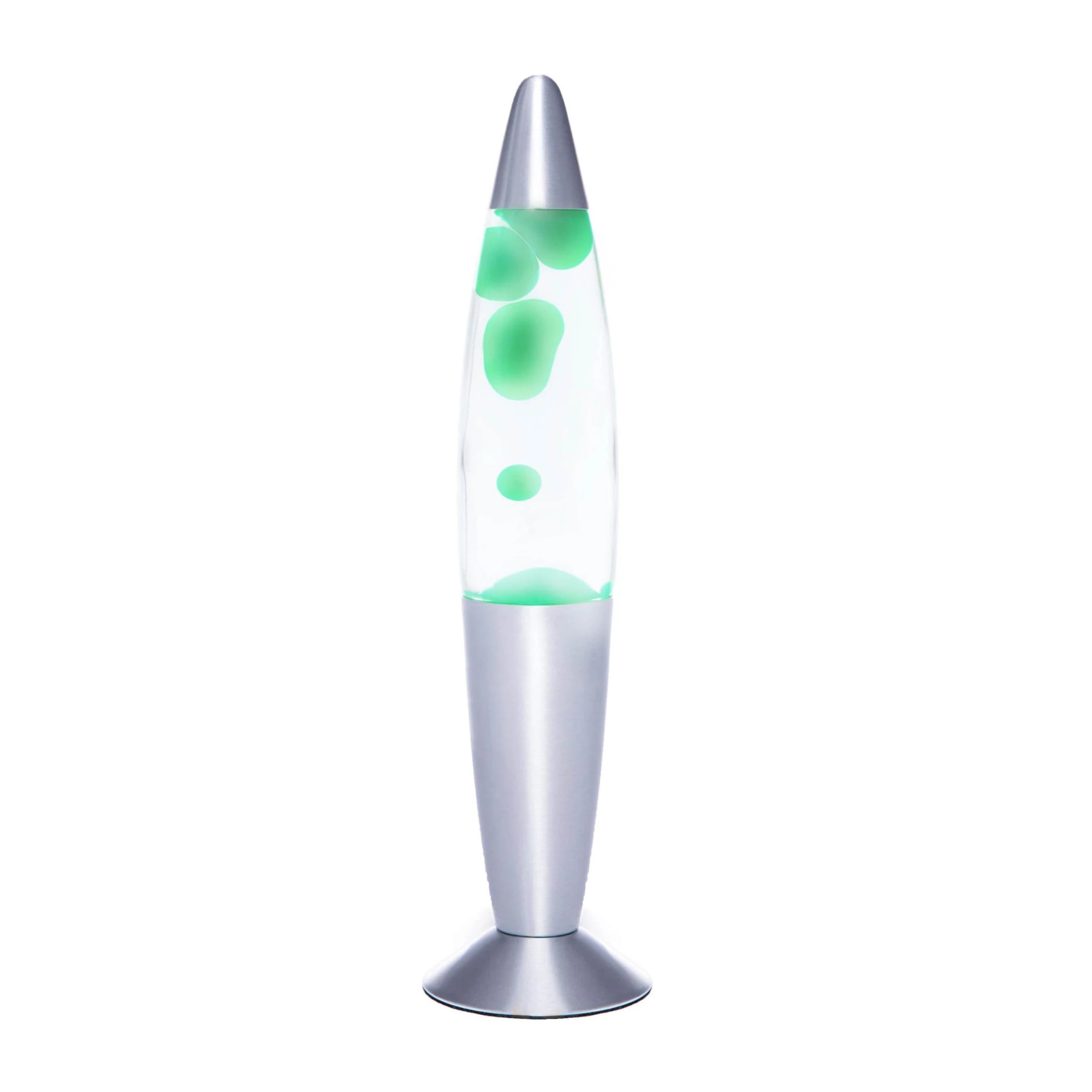 Fassung: E14 – max 20 Watt | Farbe: Grün, Klar, Silber | Material: Aluminium, Glas | Spannung: 230V | Spritzschutzklasse:IP20 | stilechte Lavalampe im angesagten Retro Look | die Verbindung aus grünem Wachs und transparenter Flüssigkeit versprüht Freude pur | eine Stimmungsleuchte für tolle Lichteffekte und eine gemütliche Atmosphäre – sie ist der Hingucker in jedem Wohnzimmer oder auf Ihrer Party (zur alleinigen Beleuchtung eines Raums ist sie nicht geeignet) | nach einer Aufwärmzeit entfaltet die Lampe ihr ganz typisches Lava Design und Sie können sich von dem ruhigen Auf und Ab der Wachs Blasen verzaubern lassen | das Gehäuse ist aus silbernem Aluminium und der Leuchtkörper aus robustem Glas, die Lampe wird mittels eines Kabelschalters eingeschalten | Maße Glas: Höhe: 360mm, Durchmesser: 60mm | Maße Standfuß: Durchmesser: 86mm | das Leuchtmittel erzeugt Wärme, die den Lavaprozess in Gang setzt: das kann eine gewisse Zeit (>2 Stunden) in Anspruch nehmen | Achtung: die warme Lavalampe im Betrieb niemals (!) schütteln oder umdrehen, dadurch wird der Prozess empfindlich gestört und es kann zu Verfärbungen der Flüssigkeit kommen