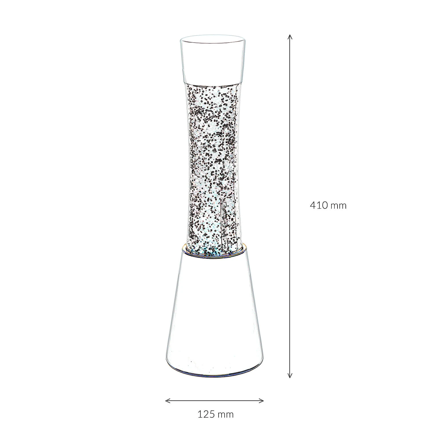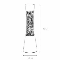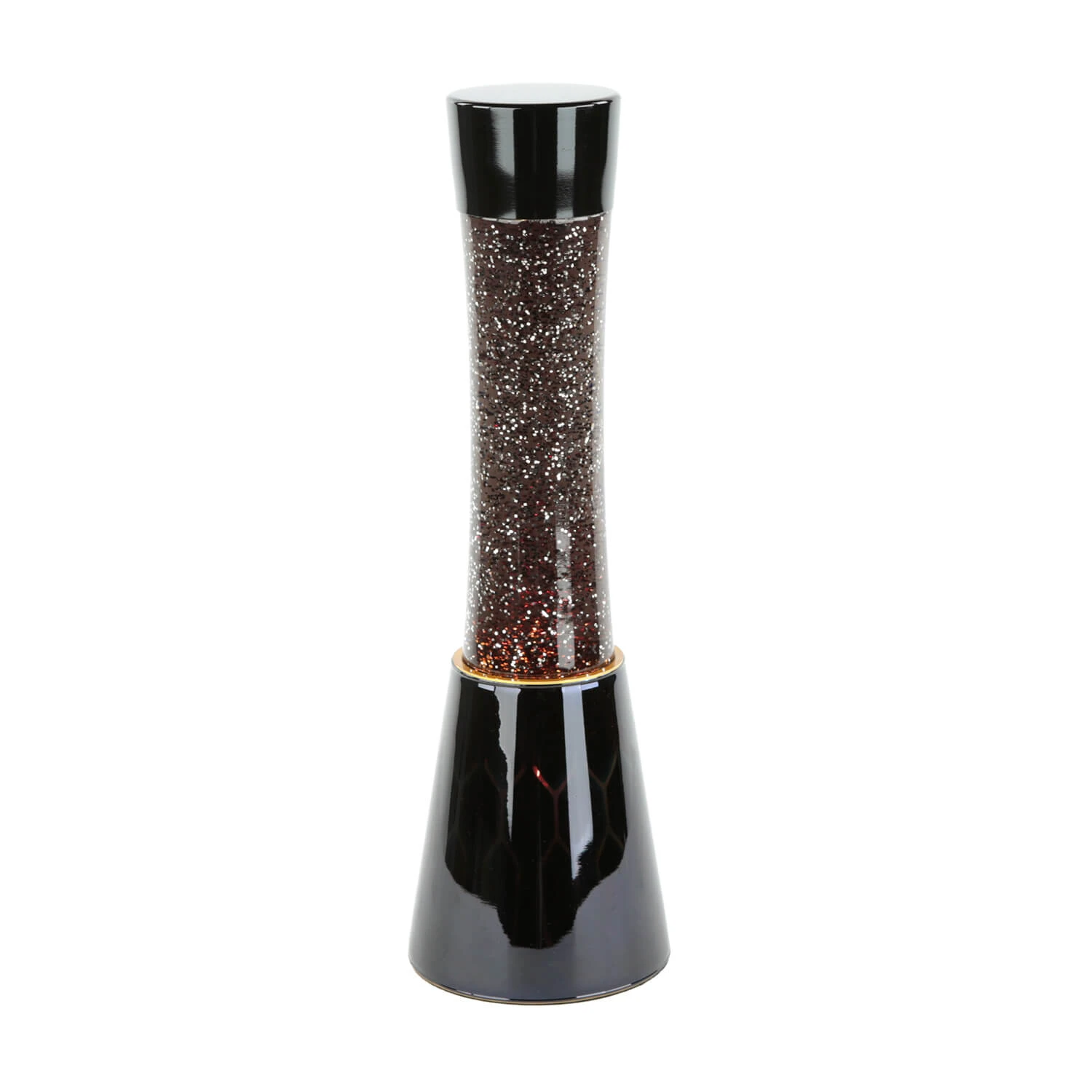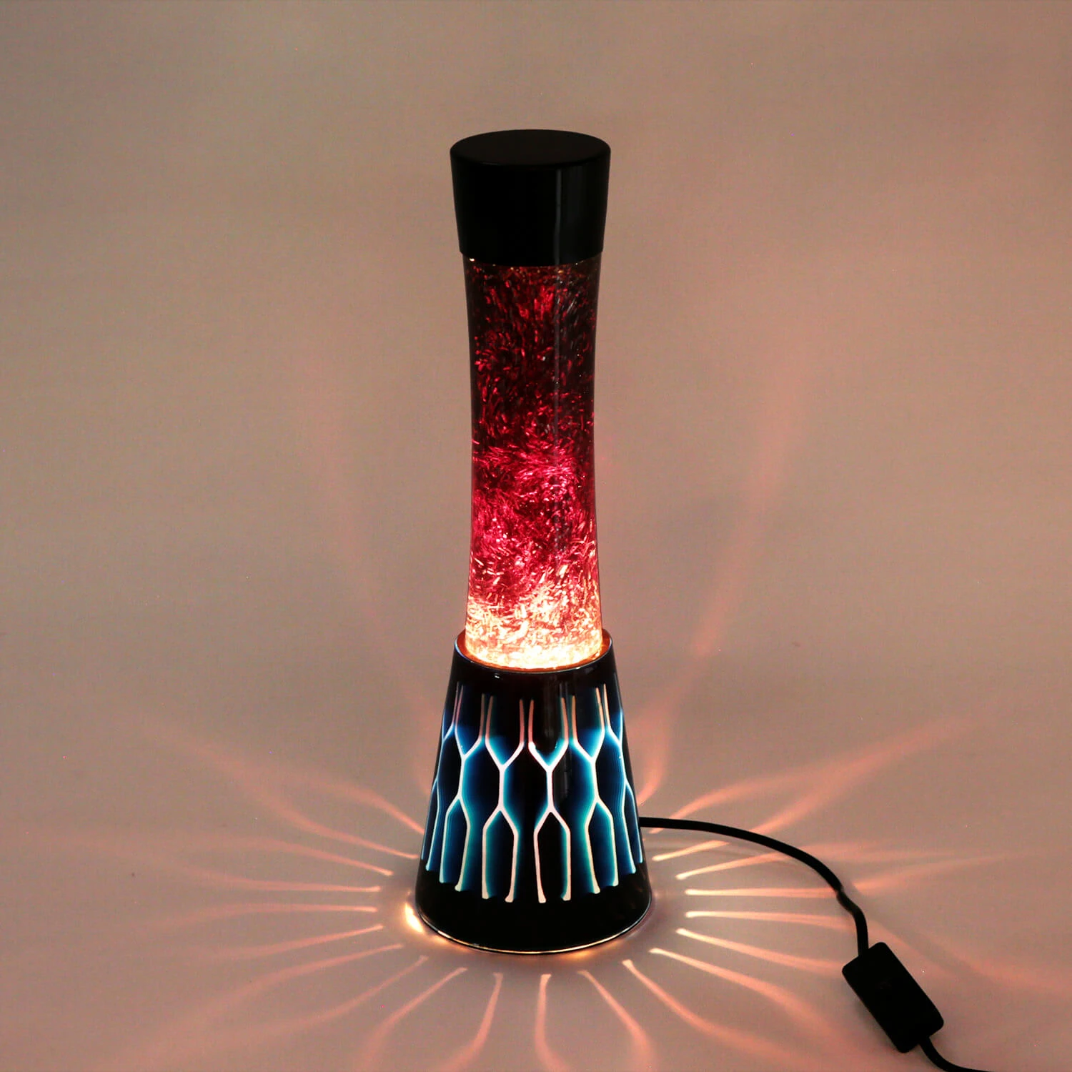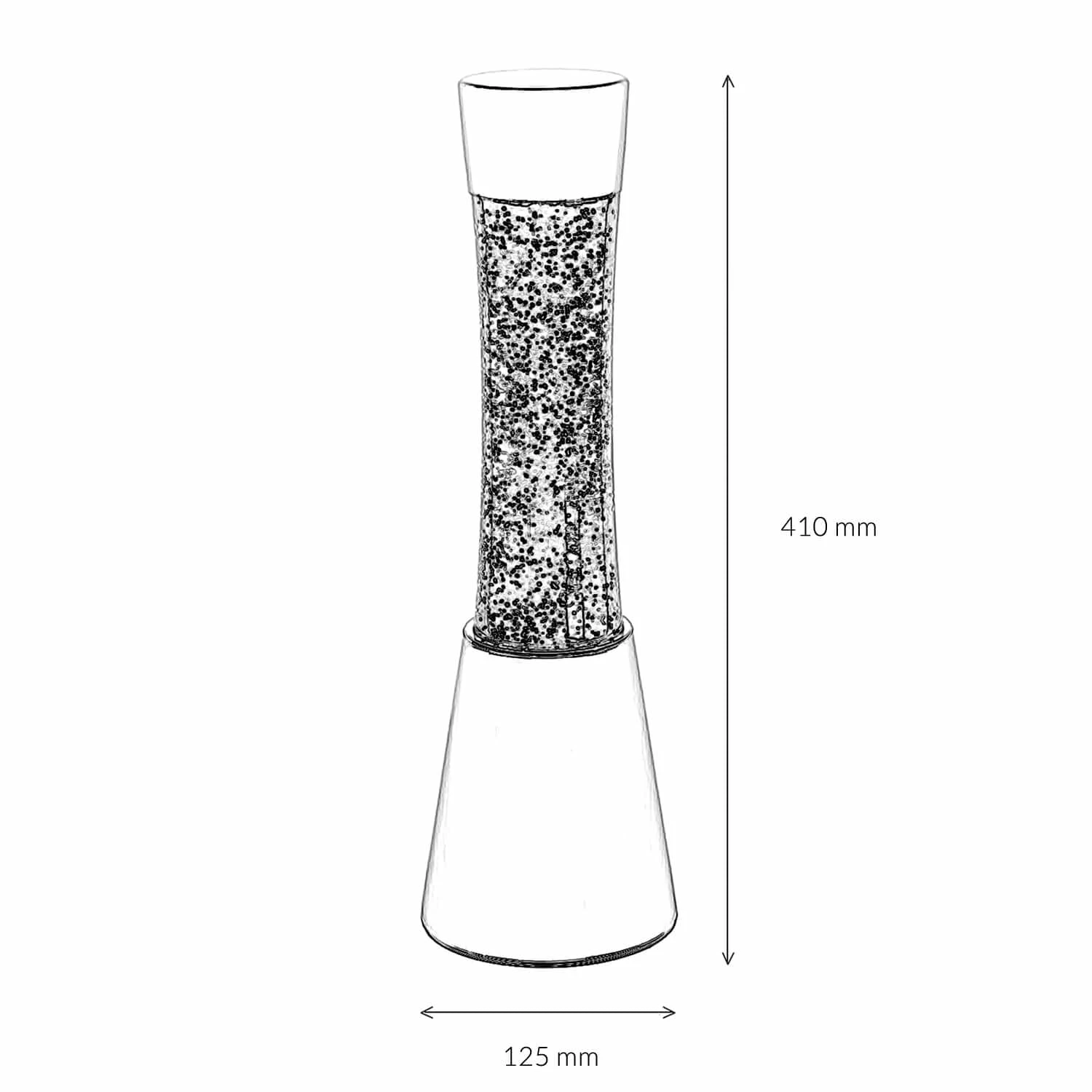 Fassung: 1x G9 max. 30 Watt | Farbe: Schwarz | Material: Glas, Aluminium | Spannung: 230V | Spritzschutzklasse:IP20 | Dekorative Glitter Lavalampe mit 3D-Sockel in Schwarz | Eingeschalten leuchtet die schwarze Flüssigkeit Blutrot, was für einen mystischen Effekt sorgt – ein stylisches Licht-Highlight für Wohnzimmer, Schlafzimmer und Partykeller | Die Glitterlampe sorgt dank des beruhigenden Auf und Ab der Glitzerteilchen für eine entspannte Atmosphäre | Das Leuchtmittel erzeugt Wärme, die den Lavaprozess in Gang setzt: das kann eine gewisse Zeit (>2 Stunden) in Anspruch nehmen | Achtung: die warme Lavalampe im Betrieb niemals (!) schütteln oder umdrehen, dadurch wird der Prozess empfindlich gestört und es kann zu Verfärbungen der Flüssigkeit kommen | inkl. Leuchtmittel und Kabelschalter