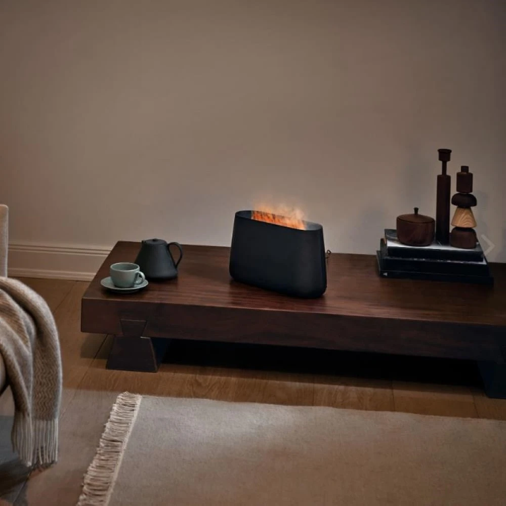 Ben ist Luftbefeuchter, Aroma Diffuser und Effektfeuer in einem. Das ätherische Öl wird direkt dem Wasser beigemischt, was für ein intensives Dufterlebnis sorgt. Ben erzeugt extra feinen Nebel, der sich optimal im Raum verteilt, wobei dank Amber Light ein bemerkenswert realistisches Flammenspiel entsteht ganz harmlos und russfrei. Von einem sanften Flämmchen mit dezentem Duft bis zum lodernden Feuer lässt sich die Intensität stufenlos regulieren.