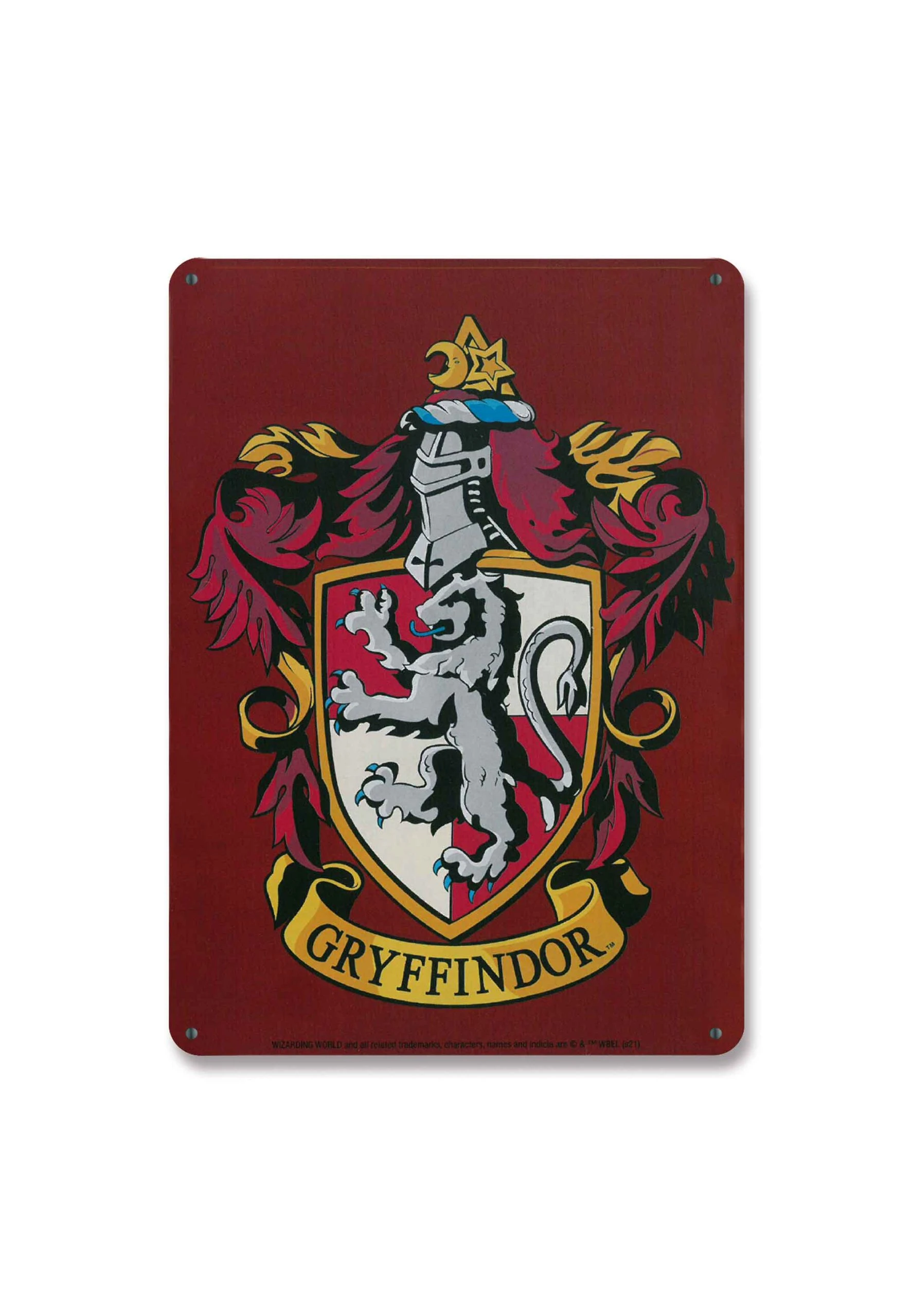 Das “Harry Potter – Gryffindor” Retro-Blechschild ist mit dem berühmten Wappen des Hauses Gryffindor in einem hochwertigen Offsetverfahren bedruckt. Gryffindor ist eines der vier Häuser der berühmten Hogwartsschule für Hexerei und Zauberei. Sein Wappentier ist der Löwe mit den Farben Rot und Gold. Gryffindor steht für Mut und Tapferkeit. Das Vintage-Blechschild ist ein Muss für alle Fans des legendären Hogwarts-Schülers Harry Potter! Das Dekoschild aus robustem Stahlblech und mit kräftigen Farben ist ein schöner und langlebiger Ersatz für herkömmliche Poster. Dank der umgeschlagenen Kanten und abgerundeten Ecken sieht das Blechschild an jeder Wand oder Tür gut aus. Durch sein praktisches DIN A5-Format kannst du sogar die kleinste Wandfläche schmücken. Das Schild eignet sich auch wegen seiner ebenen Fläche gut als Magnetwand für kleine Erinnerungsnotizen oder Botschaften. Mit den vorgebohrten Löchern kann das Metallschild leicht an der Wand montiert werden. Egal, ob im Wohnzimmer, im Büro, in der Garage, auf der Terrasse, im Partyraum oder in der Küche – mit dem Blechschild kannst du deinem Zuhause Stil und Persönlichkeit verleihen. Ob als Geschenk oder für dich ganz allein, freu dich auf ein schönes Blechschild. Logoshirt steht für lizenziertes und authentisches Originaldesign.