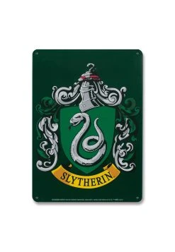 Das “Harry Potter – Slytherin Retro”-Blechschild ist mit dem berühmten Wappen des Hauses Slytherin in einem hochwertigen Offset-Verfahren bedruckt. Slytherin ist einer der vier Häuser der berühmten Hogwarts-Schule für Hexerei und Zauberei. Sein Wappentier ist die Schlange auf den Farben Grün und Silber. Slytherin steht für Zielstrebigkeit und Ehrgeiz. Das Vintage-Blechschild ist ein Muss für alle Fans des legendären Hogwarts-Schülers Harry Potter! Das Dekoschild aus robustem Stahlblech und mit den kräftigen Farben ist ein schöner und langlebiger Ersatz für herkömmliche Poster. Dank der umgeschlagenen Kanten und abgerundeten Ecken sieht das Blechschild an jeder Wand oder Tür gut aus. Durch sein praktisches DIN A5-Format kannst du sogar kleinere Wandflächen schmücken. Das Schild eignet sich auch wegen seiner ebenen Fläche gut als Magnetwand für kleine Erinnerungsnotizen oder Botschaften. Mit den vorgebohrten Löchern kann das Metallschild leicht an der Wand montiert werden. Egal, ob im Wohnzimmer, im Büro, in der Garage, auf der Terrasse, im Partyraum oder in der Küche – mit dem Blechschild kannst du deinem Zuhause Stil und Persönlichkeit verleihen. Ob als Geschenk oder für dich ganz allein, freu dich auf ein schönes Blechschild. Logoshirt steht für lizenziertes und authentisches Originaldesign.