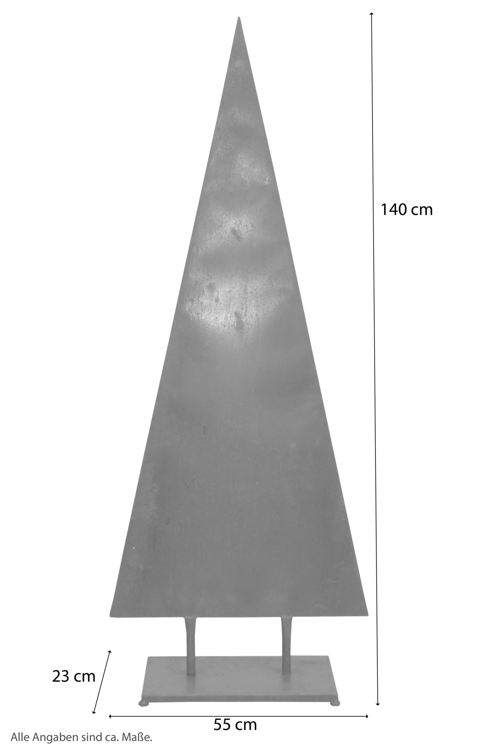 Trendige Metalldekoration aus Eisen mit einer rostigen Oberfläche, in Form eines Baumes. Mit Metallstandfuß. Für den Indoor- und auch Outdoorbereich dekorativ und schön. Lieferung erfolgt teilzerlegt, einfach Fuß montieren. Maße ca. cm: B. 55 x T. 23 x H. 140 cm. Auch in 108 cm hoch lieferbar.