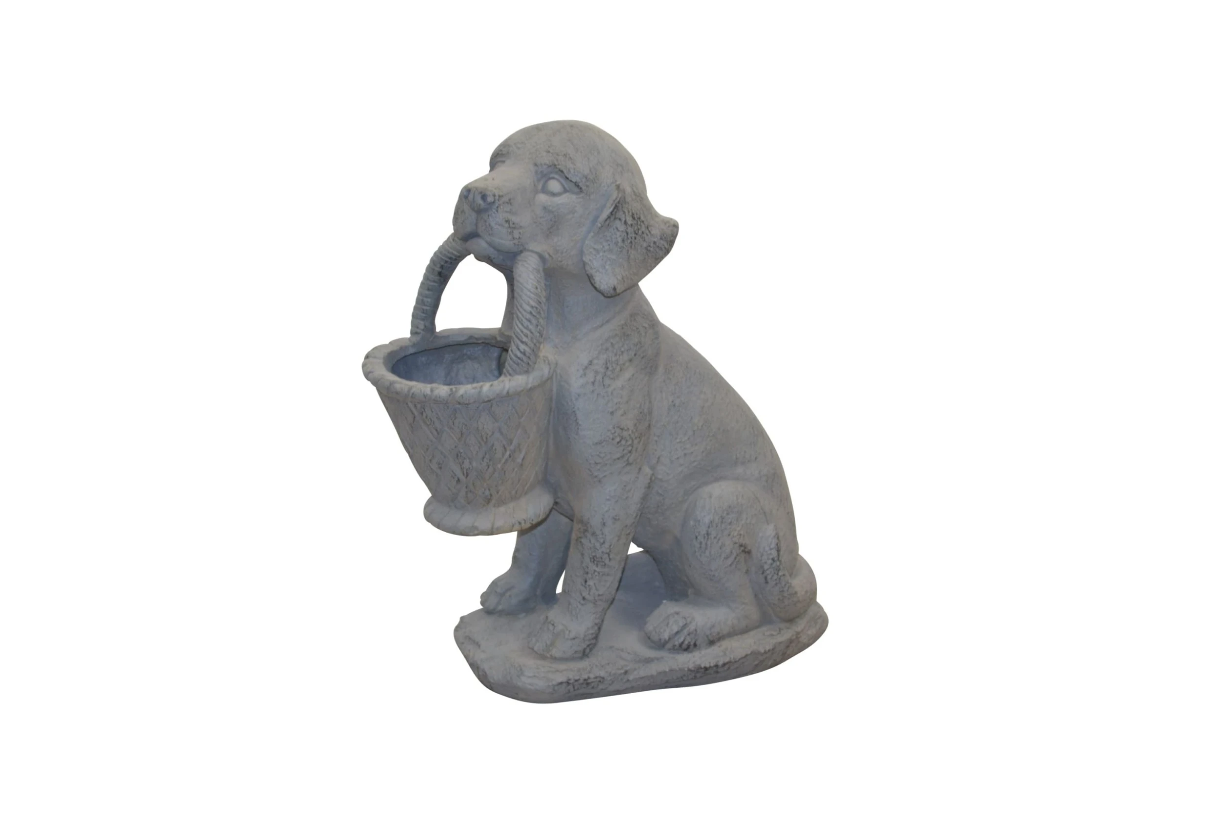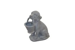 Pflanzkübel “Hund mit Korb” aus Polyresin (Magnesium-Pulver), naturgrau lackiert, mit schönen Details gearbeitet. Mit Pflanzeinsatz (B 8,5 x T. 8,5 x Höhe 9,5 cm) gearbeitet. Gesamtmaße ca. cm: (B/H/T) 36/42/17. Für den Außenbereich geeignet.